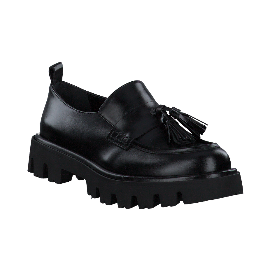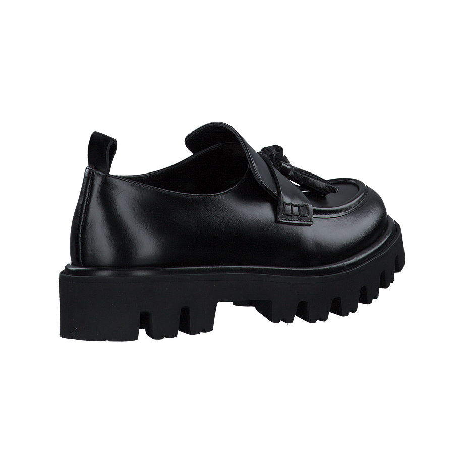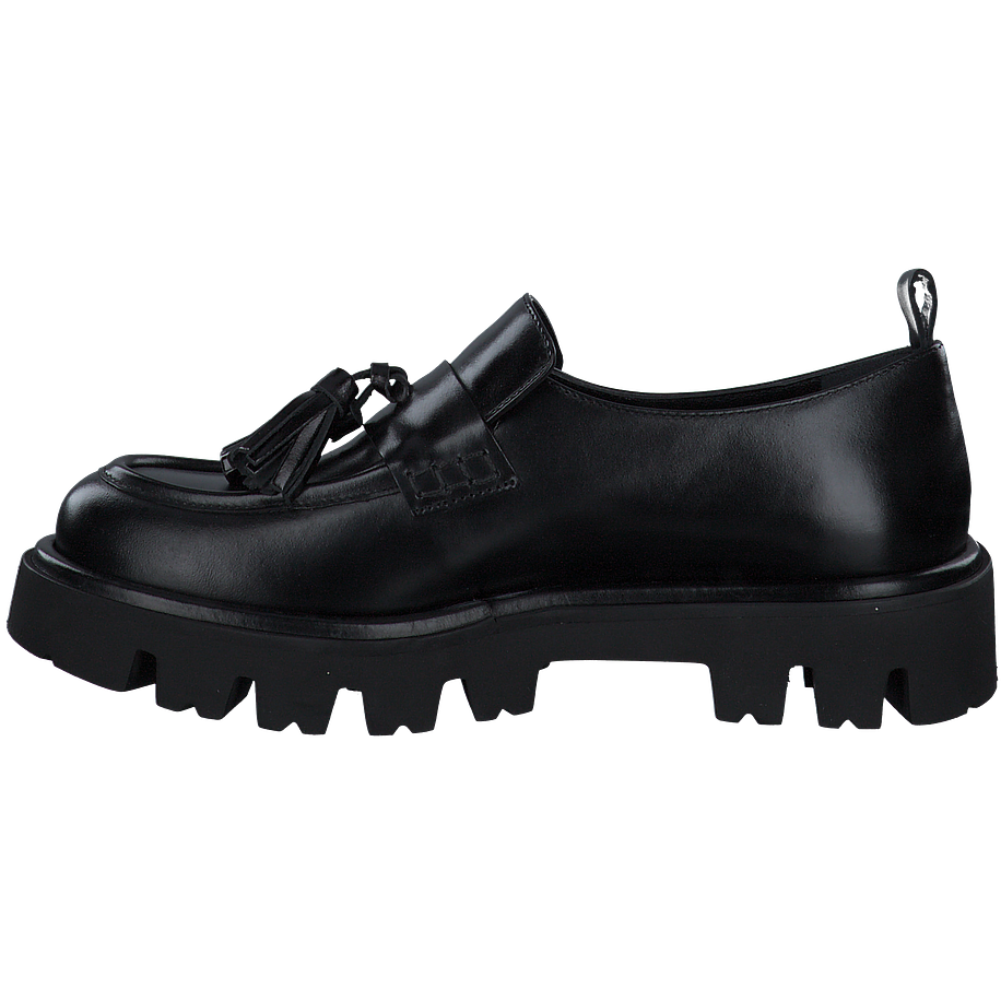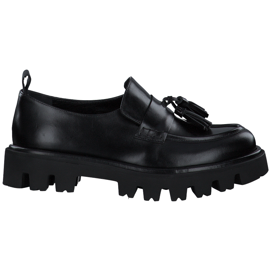 Preis inkl. MwSt.Die modernen schwarzen Konstantin Starke Slipper für Damen begleiten Sie stilvoll und komfortabel durch Ihren Alltag und sorgen stets für einen ausgefallenen und doch eleganten Hingucker in jedem Look. Die lässigen Damenschuhe sind aus hochwertigem schwarzem Glattleder gefertigt, welches durch derbe Profilsohlen aus schwarzem Gummi optimal in Szene gesetzt wird. Auf den robusten Sohlen genießen Sie einen rutschfesten Halt gepaart mit einem überaus stylishen Look. Verspielte Fransen unterstreichen den durchaus feminininen Stil der schwarzen Konstantin Starke Trotteur und machen diese zu den perfekten Schuhen für jeden Tag.