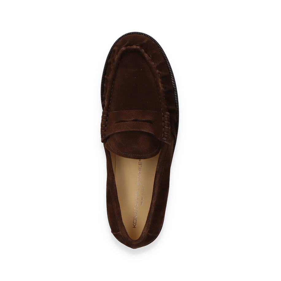 Preis inkl. MwSt.Entdecken Sie den eleganten Slipper von Konstantin Starke in einem edlen Dunkelbraun, der sich perfekt für Herren eignet. Das Design besticht durch seine zeitlose Ästhetik und die hochwertige Verarbeitung. Der Slipper präsentiert sich mit einem geschmeidigen Leder-Obermaterial, das durch seine samtige Textur und die dezente Nahtführung überzeugt. Die klassische Silhouette wird durch den dezenten Absatz von 3 cm harmonisch ergänzt, was dem Schuh eine subtile Erhöhung und Eleganz verleiht.