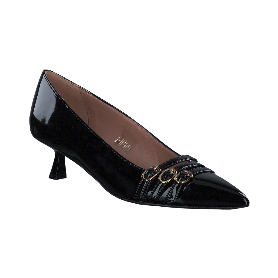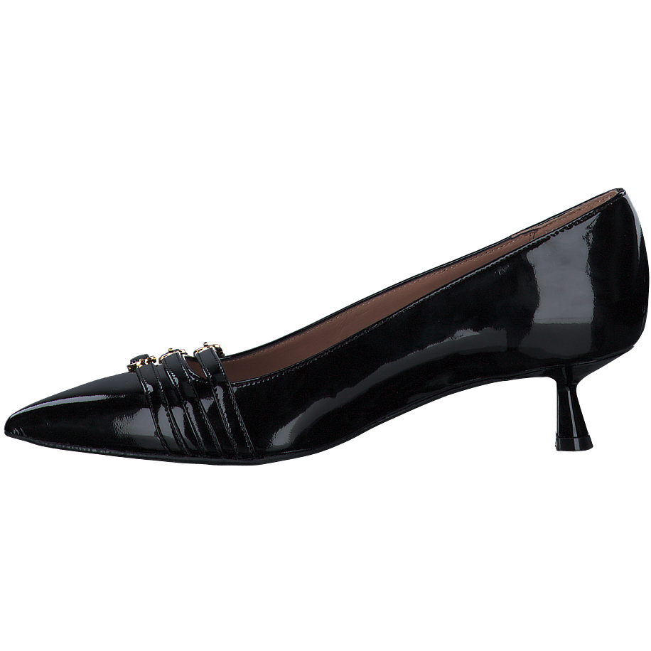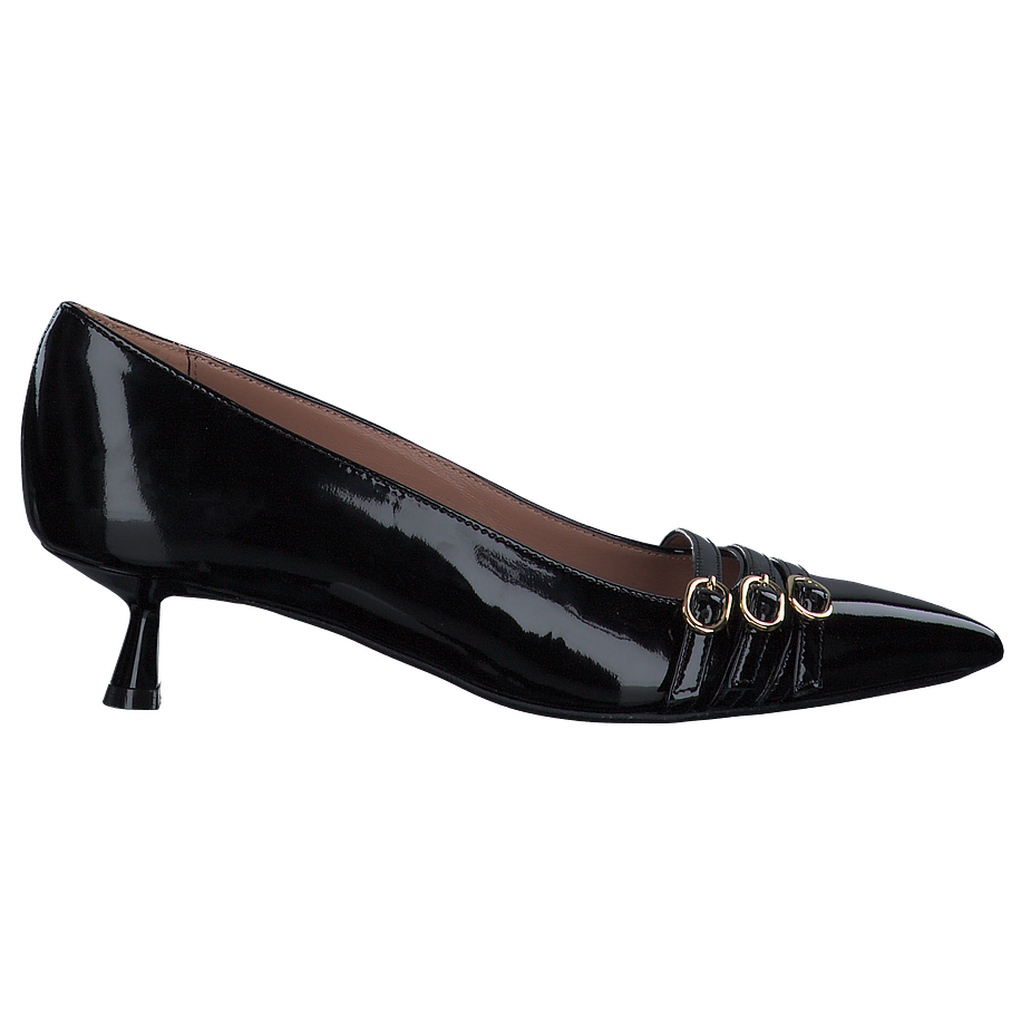 Preis inkl. MwSt.Entdecken Sie die eleganten Klassischen Pumps von Konstantin Starke, ideal für Damen, die Stil und Komfort schätzen. Diese schwarzen Pumps zeichnen sich durch eine raffinierte Lack-Oberfläche aus, die jedem Outfit einen Hauch von Glamour verleiht. Der Kittenheel mit einer Höhe von 4,5 cm bietet eine perfekte Balance zwischen Eleganz und Tragekomfort. Das Innenfutter, die Innensohle und das Obermaterial bestehen aus hochwertigem Leder, das für ein luxuriöses Tragegefühl sorgt. Die Gummisohle gewährleistet eine hervorragende Haltbarkeit und Rutschfestigkeit. Ein besonderes Highlight sind die drei dekorativen Schnallen an der Spitze, die dem Schuh eine einzigartige und stilvolle Note verleihen. Diese Pumps sind die perfekte Wahl für formelle Anlässe oder elegante Abendveranstaltungen. Gönnen Sie sich den Luxus und die zeitlose Eleganz der Konstantin Starke Klassischen Pumps.