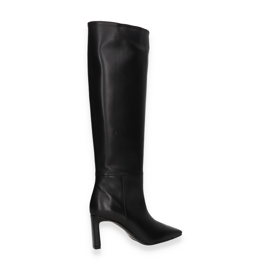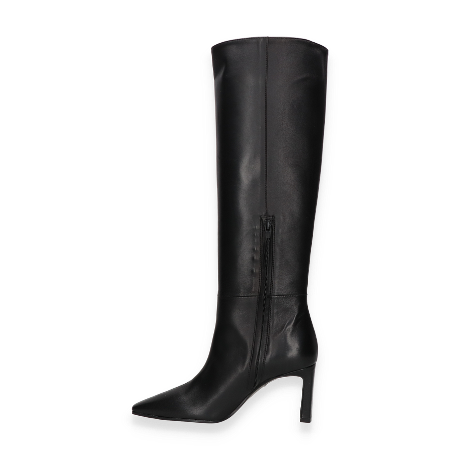 Die eleganten Stiefel von Konstantin Starke in klassischem Schwarz sind ein Must-Have für Damen, die Stil und Komfort schätzen. Gefertigt aus hochwertigem Leder, bieten diese Stiefel eine zeitlose Ästhetik, die sich perfekt für verschiedene Anlässe eignet. Der 8,5 cm hohe Absatz verleiht eine anmutige Silhouette, während der 45 cm hohe Schaft und die 35 cm Schaftweite für eine schmeichelhafte Passform sorgen. Der spitze Zehenbereich und das schlanke Design unterstreichen die Raffinesse dieses Modells.