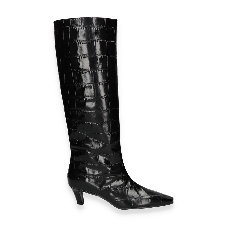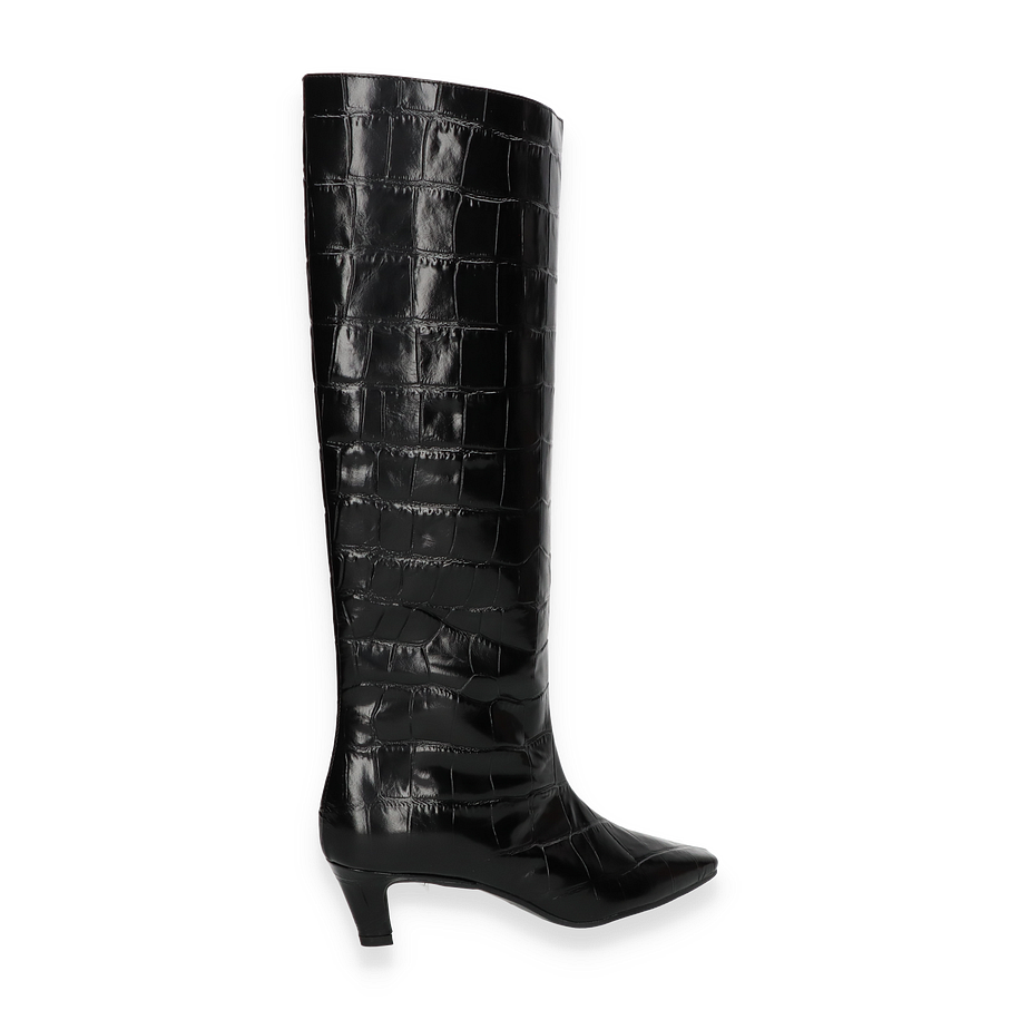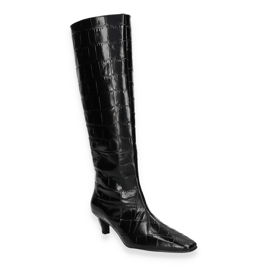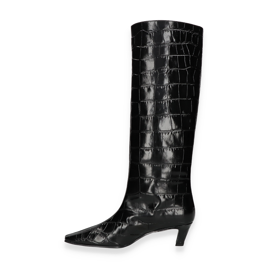 Preis inkl. MwSt.Die eleganten Stiefel von Konstantin Starke für Damen präsentieren sich in einem stilvollen Schwarz und beeindrucken durch ihr luxuriöses Design. Die hohe Schafthöhe von 40 cm und die dezente Absatzhöhe von 5 cm verleihen dem Schuh eine raffinierte Silhouette, die sowohl modern als auch zeitlos wirkt. Der hochwertige Lederbezug mit Krokodilprägung unterstreicht den exklusiven Charakter und macht diesen Stiefel zu einem echten Blickfang für anspruchsvolle Anlässe.