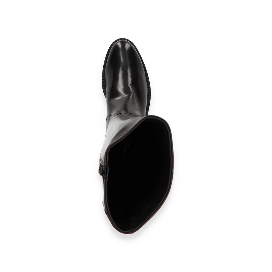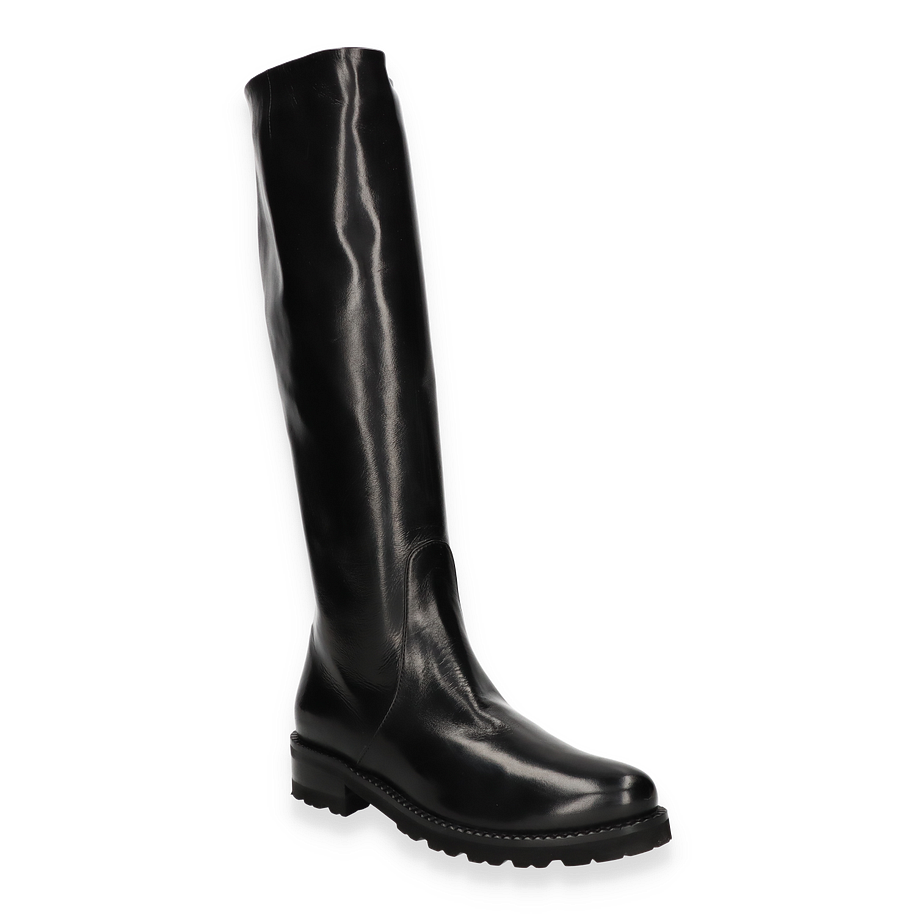 Preis inkl. MwSt.Entdecken Sie die eleganten Stiefel von Konstantin Starke für Damen, die durch ihr zeitloses Design und ihre hochwertige Verarbeitung überzeugen. Diese schwarzen Stiefel beeindrucken mit einem glatten Lederobermaterial, das einen luxuriösen Glanz bietet und jedem Outfit eine edle Note verleiht. Der hohe Schaft von 40 cm und die dezente Absatzhöhe von 4 cm sorgen für eine schlanke Silhouette und einen stilvollen Auftritt.