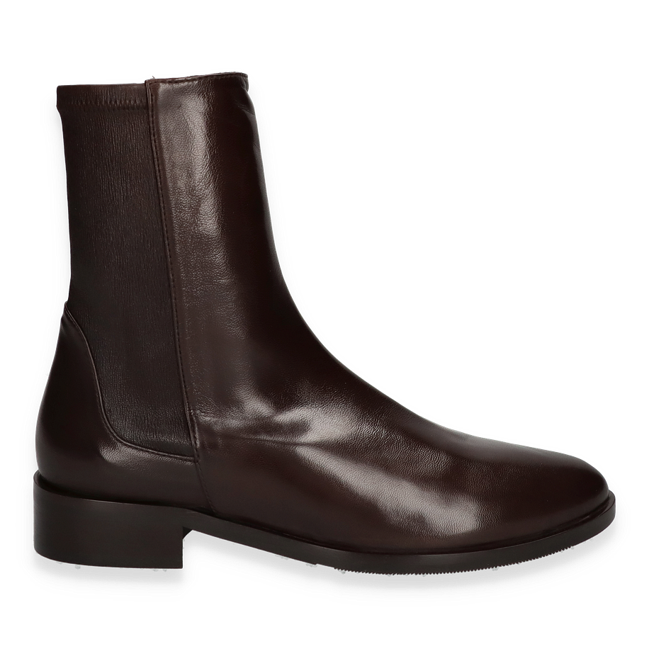Preis inkl. MwSt.Die klassischen Stiefeletten von Konstantin Starke in Dunkelbraun präsentieren sich in einem eleganten und zeitlosen Design, das sich perfekt für Damen eignet. Der edle Glanz des hochwertigen Leders verleiht diesen Schuhen eine luxuriöse Ausstrahlung, während die schlanke Silhouette und der dezente Absatz von 3 cm eine ansprechende Ästhetik bieten. Mit einer Schafthöhe von 17 cm und einer Schaftweite von 20 cm umschmeicheln sie das Bein und bieten gleichzeitig optimalen Komfort.