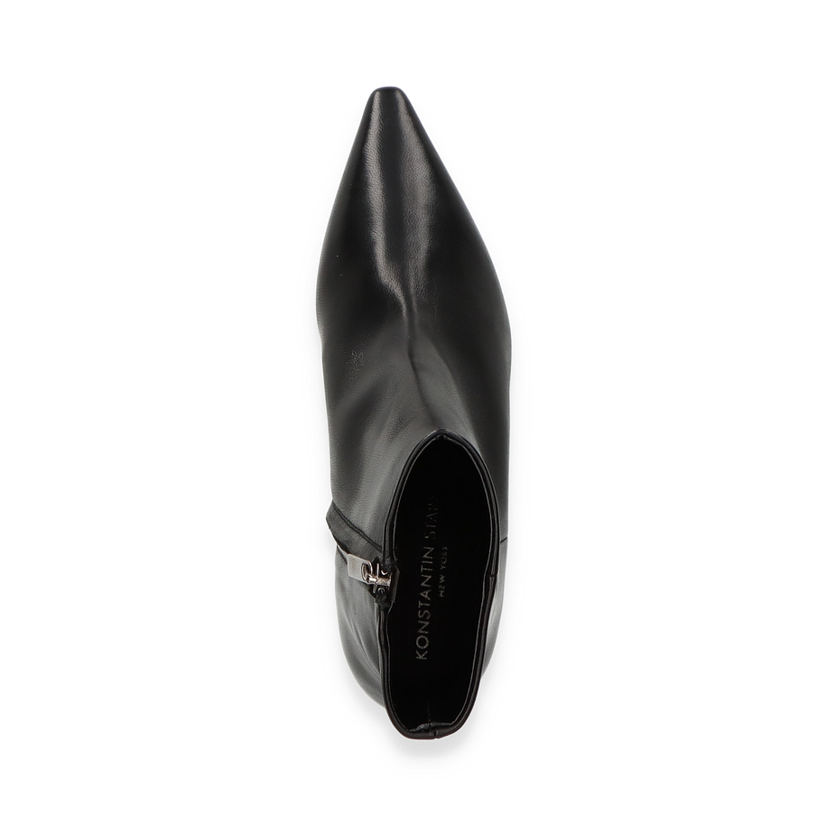 Die klassischen Stiefeletten von Konstantin Starke präsentieren sich in elegantem Schwarz und sind ein Must-have für Damen, die zeitlose Eleganz schätzen. Der schlanke Schnitt und der spitz zulaufende Zehenbereich verleihen diesen Stiefeletten eine raffinierte Silhouette, die sowohl für formelle Anlässe als auch für den Alltag geeignet ist. Der dezente Absatz von 6 cm sorgt für eine feminine Note, während der Reißverschluss an der Seite einen einfachen Einstieg ermöglicht.