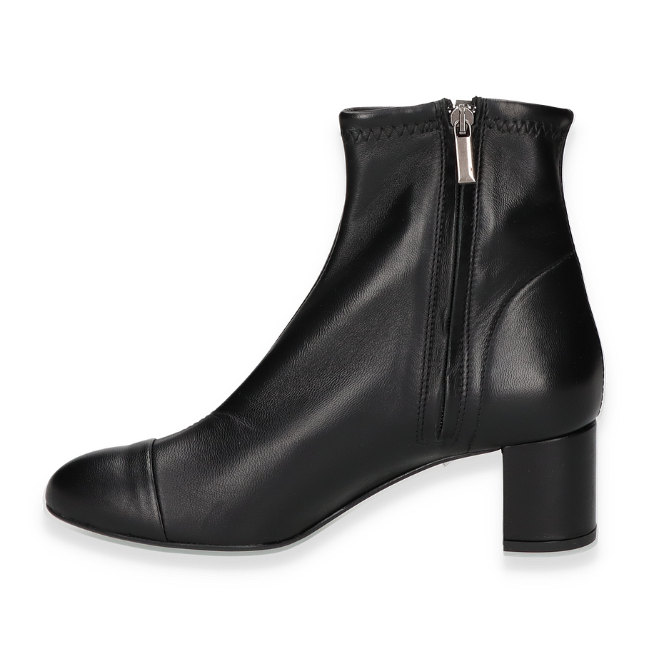 Preis inkl. MwSt.Entdecken Sie die eleganten Klassischen Stiefeletten für Damen von Konstantin Starke in zeitlosem Schwarz. Diese Stiefeletten bestechen durch ihr minimalistisches Design und die hochwertige Verarbeitung. Der 5,5 cm hohe Absatz verleiht Ihnen eine anmutige Silhouette, während der 14 cm hohe Schaft und die 22 cm Schaftweite für eine bequeme Passform sorgen. Der Reißverschluss an der Seite ermöglicht ein einfaches An- und Ausziehen, während die glatte Lederoberfläche einen luxuriösen Touch bietet.