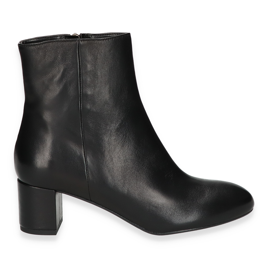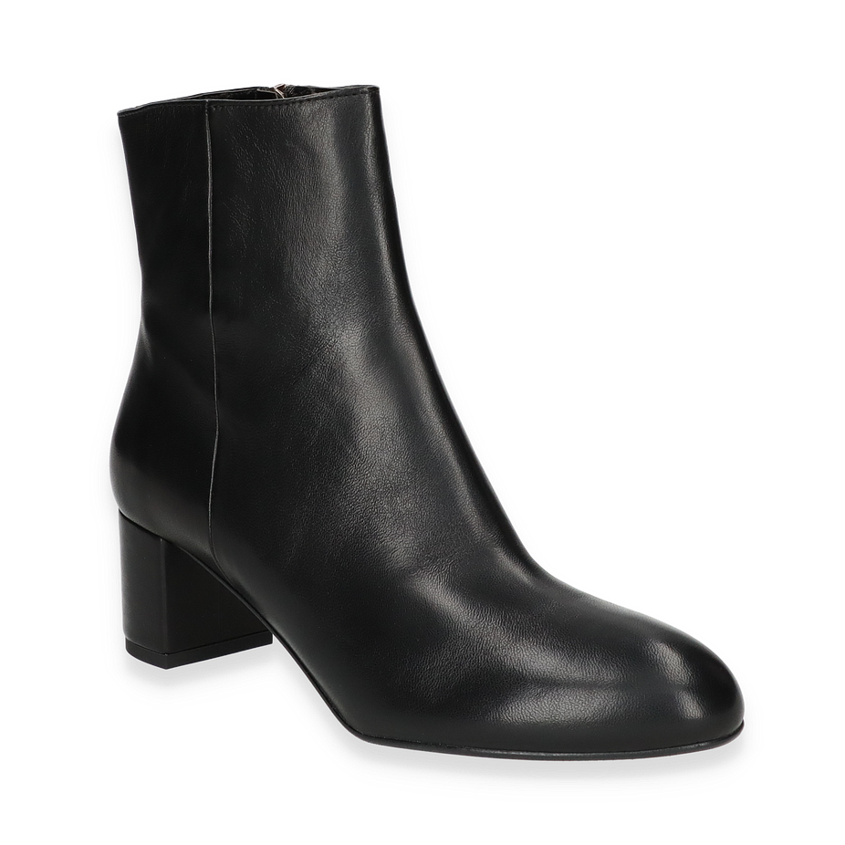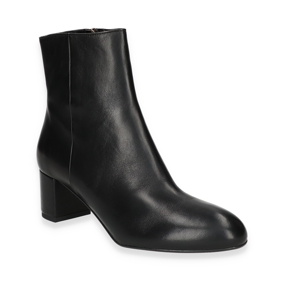 Die Konstantin Starke Klassische Stiefeletten für Damen präsentieren sich in einem eleganten Schwarz, das zeitlose Raffinesse ausstrahlt. Der geschmeidige Lederobermaterial sorgt für ein luxuriöses Erscheinungsbild, während der 5 cm hohe Absatz eine subtile Erhöhung bietet, die sowohl Komfort als auch Stil vereint. Mit einer Schafthöhe von 14 cm und einer Schaftweite von 24 cm umschmeicheln diese Stiefeletten das Bein und bieten eine schmeichelhafte Silhouette. Der seitliche Reißverschluss ermöglicht ein einfaches An- und Ausziehen, während die klare Linienführung und das minimalistische Design vielseitig kombinierbar sind.