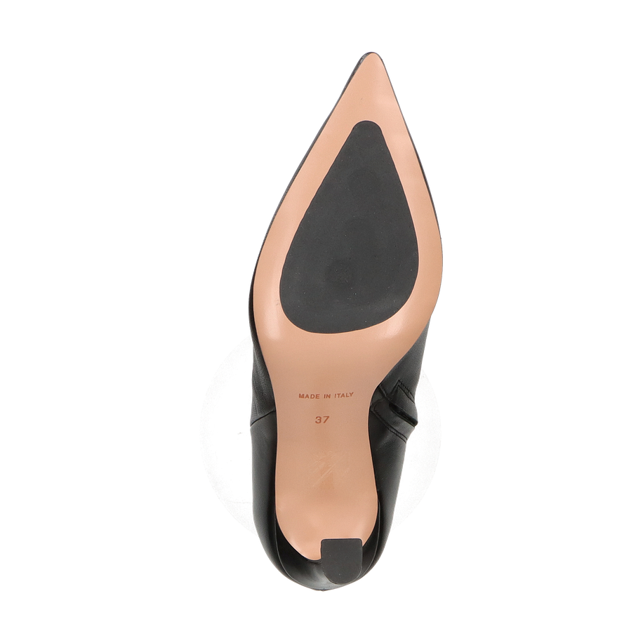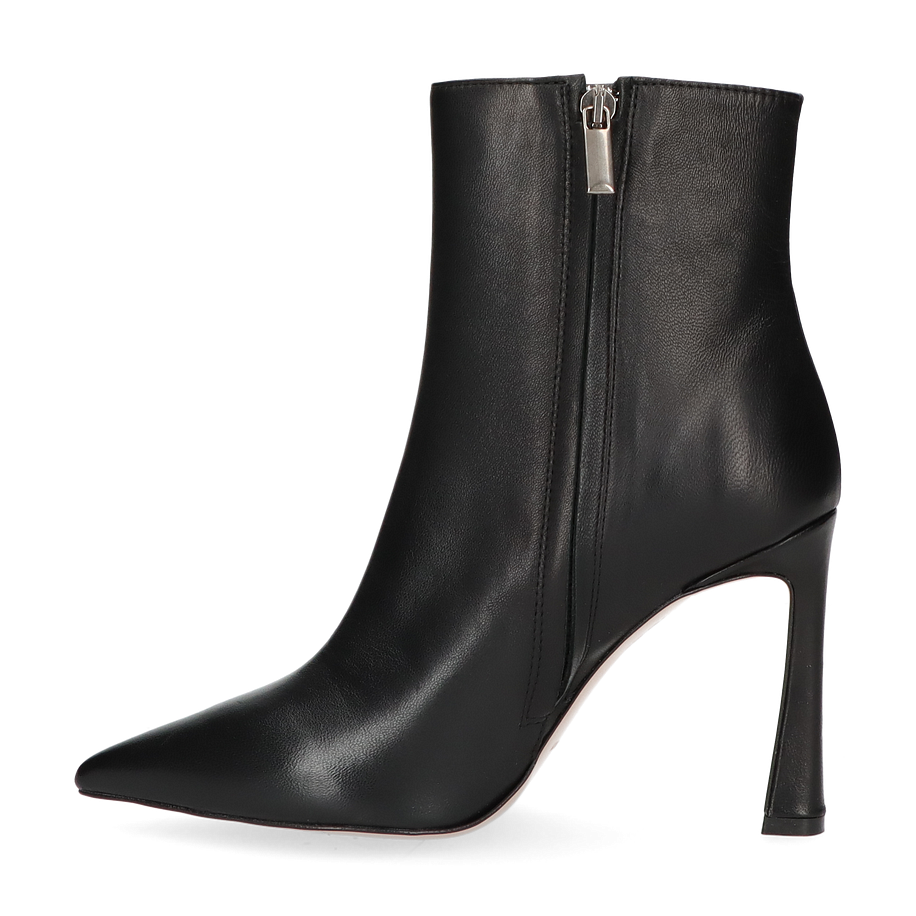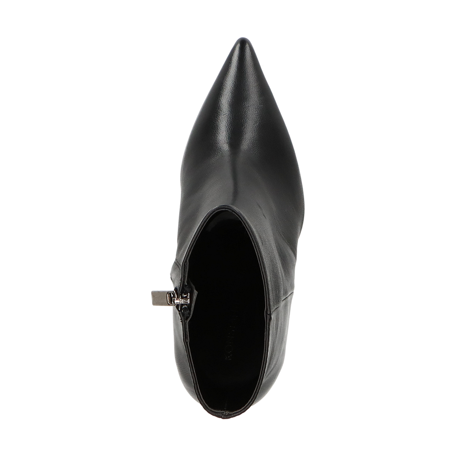 Die klassischen Stiefeletten von Konstantin Starke für Damen präsentieren sich in einem eleganten Schwarz, das zeitlose Raffinesse ausstrahlt. Gefertigt aus hochwertigem Leder, bieten diese Stiefeletten eine glatte, luxuriöse Oberfläche, die jedem Outfit einen Hauch von Eleganz verleiht. Der 9 cm hohe Absatz sorgt für eine schlanke Silhouette und unterstreicht die feminine Ausstrahlung. Die spitz zulaufende Form und der seitliche Reißverschluss ergänzen das stilvolle Design und bieten gleichzeitig Funktionalität.