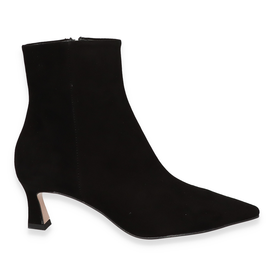 Die Konstantin Starke Klassische Stiefeletten für Damen präsentieren sich in einem eleganten Schwarz, das zeitlose Eleganz und Vielseitigkeit ausstrahlt. Der schlanke, spitz zulaufende Schnitt und der 6 cm hohe Absatz verleihen dem Schuh eine raffinierte Silhouette, die sowohl für formelle Anlässe als auch für den Alltag geeignet ist. Der 14 cm hohe Schaft sorgt für eine schmeichelhafte Passform, während der dezente Reißverschluss an der Seite ein einfaches An- und Ausziehen ermöglicht.