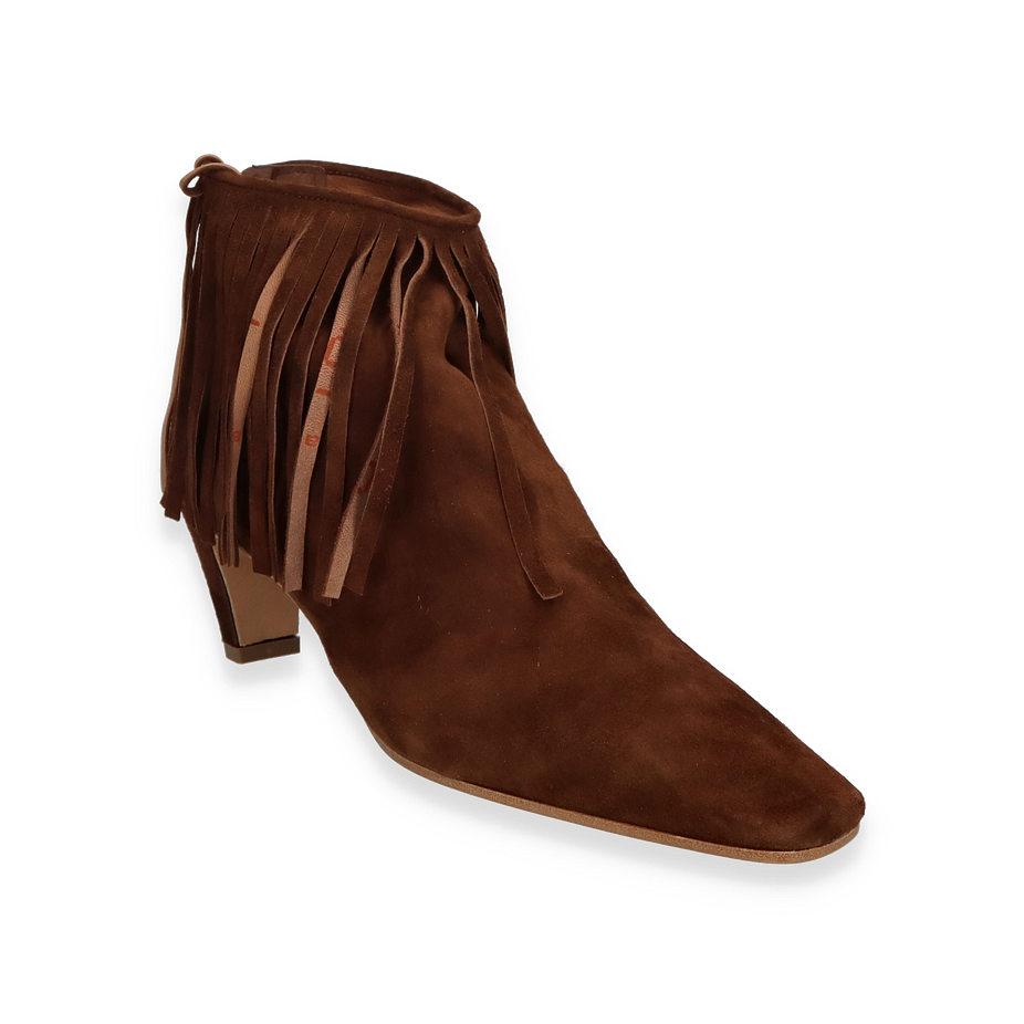 Entdecken Sie die exquisiten Western Stiefeletten für Damen von Konstantin Starke in einem eleganten Dunkelbraun. Diese Stiefeletten zeichnen sich durch ihre stilvollen Fransen aus, die jedem Outfit einen Hauch von Wildwest-Charme verleihen. Der 6 cm hohe Absatz sorgt für eine ansprechende Silhouette und bietet gleichzeitig Komfort für den ganzen Tag. Das hochwertige Lederobermaterial verleiht den Schuhen nicht nur eine luxuriöse Optik, sondern auch eine langlebige Qualität.