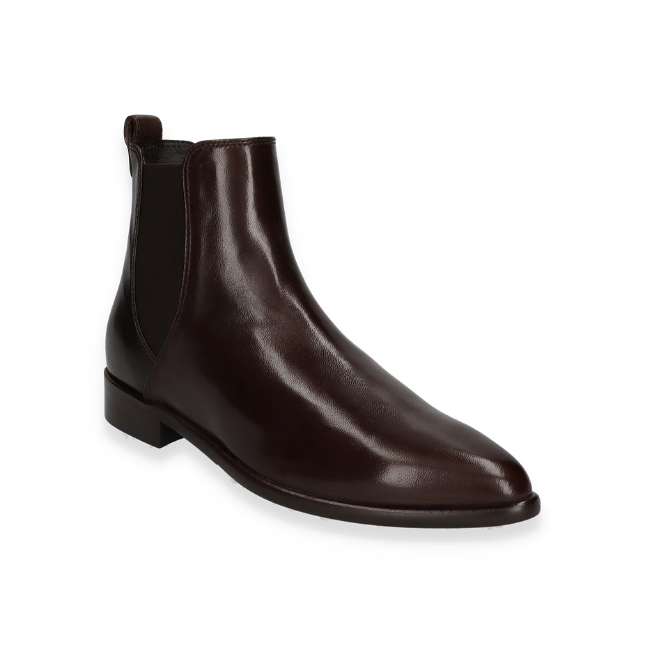 Preis inkl. MwSt.Die klassischen Stiefeletten von Konstantin Starke in Dunkelbraun präsentieren sich in einem eleganten Design, das zeitlose Raffinesse ausstrahlt. Gefertigt aus hochwertigem Leder, bieten sie eine glatte und glänzende Oberfläche, die jedem Outfit eine edle Note verleiht. Der dezente Absatz von 2,5 cm sorgt für einen angenehmen Tragekomfort, während die elastischen Seiteneinsätze das An- und Ausziehen erleichtern. Diese Stiefeletten für Damen sind die perfekte Wahl für stilbewusste Frauen, die Wert auf Qualität und Ästhetik legen.