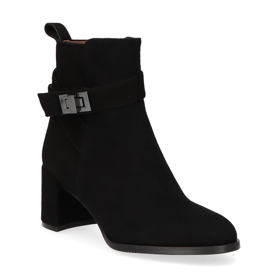 Die Konstantin Starke Klassische Stiefeletten in Schwarz präsentieren sich in einem eleganten und zeitlosen Design. Diese Stiefeletten für Damen zeichnen sich durch ihre hochwertige Verarbeitung und das edle Erscheinungsbild aus. Der seitliche Reißverschluss und die dekorative Schnalle verleihen dem Schuh eine besondere Note und sorgen gleichzeitig für eine optimale Passform und einfaches An- und Ausziehen. Der Blockabsatz mit einer Höhe von 6 cm bietet eine angenehme Höhe für den täglichen Gebrauch und sorgt für einen sicheren Stand. Diese Stiefeletten bestehen aus feinstem Leder, das sowohl für das Obermaterial als auch für das Innenmaterial und die Innensohle verwendet wurde. Die Gummisohle sorgt für eine hervorragende Rutschfestigkeit und Langlebigkeit. Mit diesen Stiefeletten von Konstantin Starke setzen Sie auf Qualität und Stil, die sich perfekt für verschiedene Anlässe eignen.