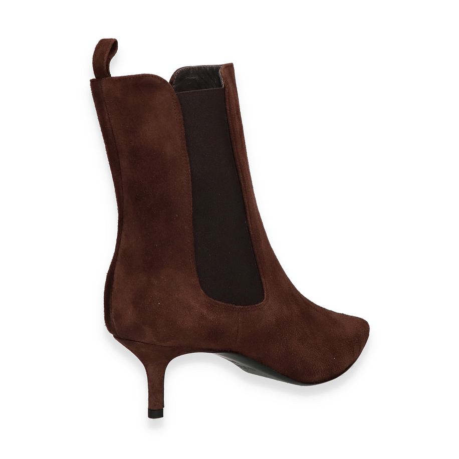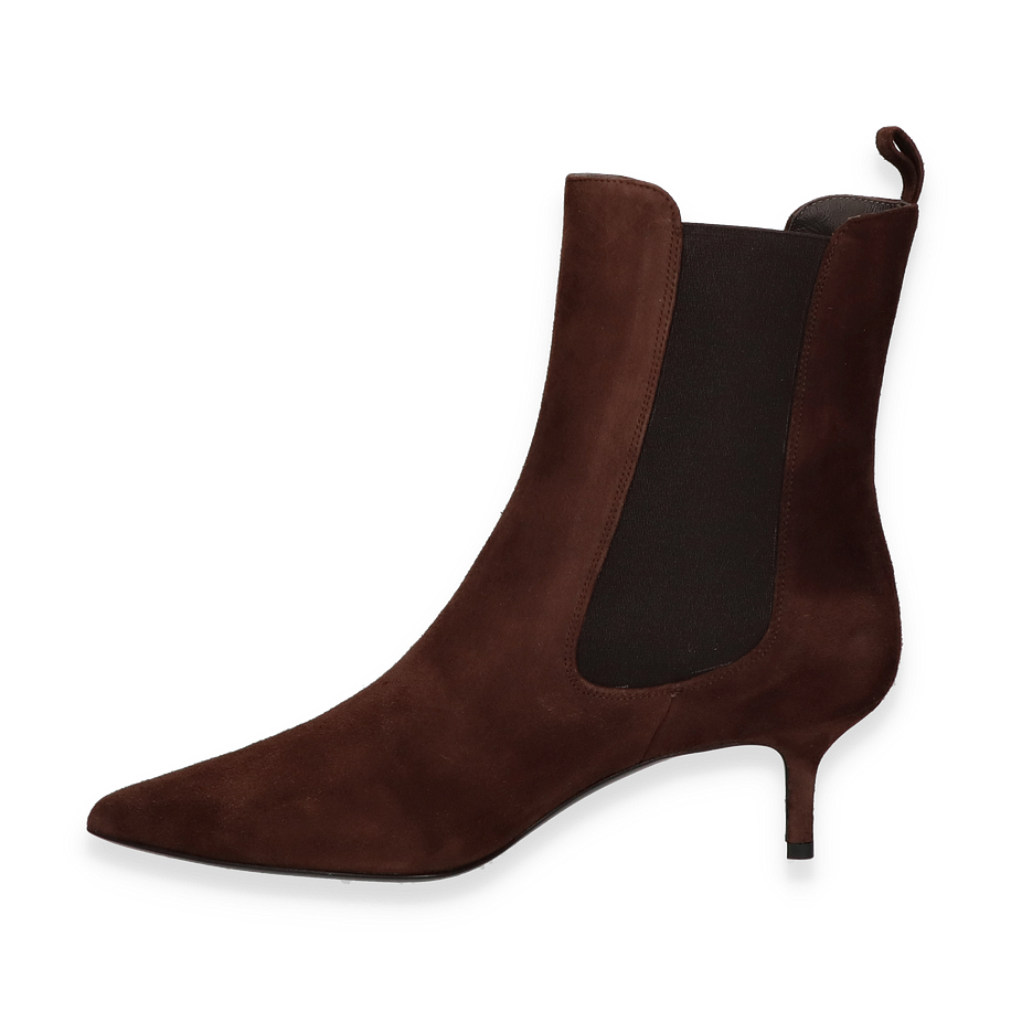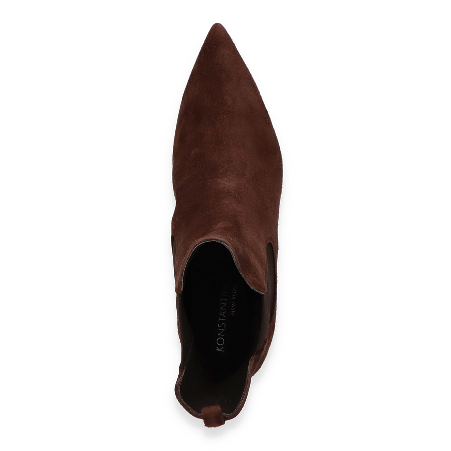 Preis inkl. MwSt.Die klassischen Stiefeletten von Konstantin Starke in Dunkelbraun verkörpern zeitlose Eleganz und Raffinesse. Diese stilvollen Stiefeletten für Damen zeichnen sich durch ihr schlankes Design und die spitz zulaufende Form aus, die jedem Outfit eine edle Note verleihen. Der 5 cm hohe Absatz sorgt für eine ansprechende Silhouette, während die elastischen Seiteneinsätze einen komfortablen Einstieg ermöglichen. Das hochwertige Lederobermaterial verleiht den Schuhen eine luxuriöse Optik und Haptik.
