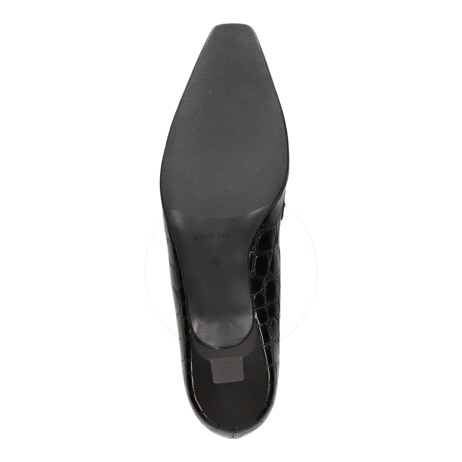 Entdecken Sie den eleganten Trotteur von Konstantin Starke, perfekt für Damen, die Stil und Komfort schätzen. Dieser schwarze Schuh besticht durch sein Obermaterial aus hochwertigem Leder mit einer edlen Reptilien-Prägung. Die Absatzhöhe von 4,5 cm sorgt für eine ansprechende Silhouette, während das Innenfutter aus Leder ein angenehmes Tragegefühl garantiert. Auch die Innensohle besteht aus Leder und bietet zusätzlichen Komfort. Die Gummisohle sorgt für sicheren Halt und Langlebigkeit. Ein Must-Have für jede anspruchsvolle Garderobe.