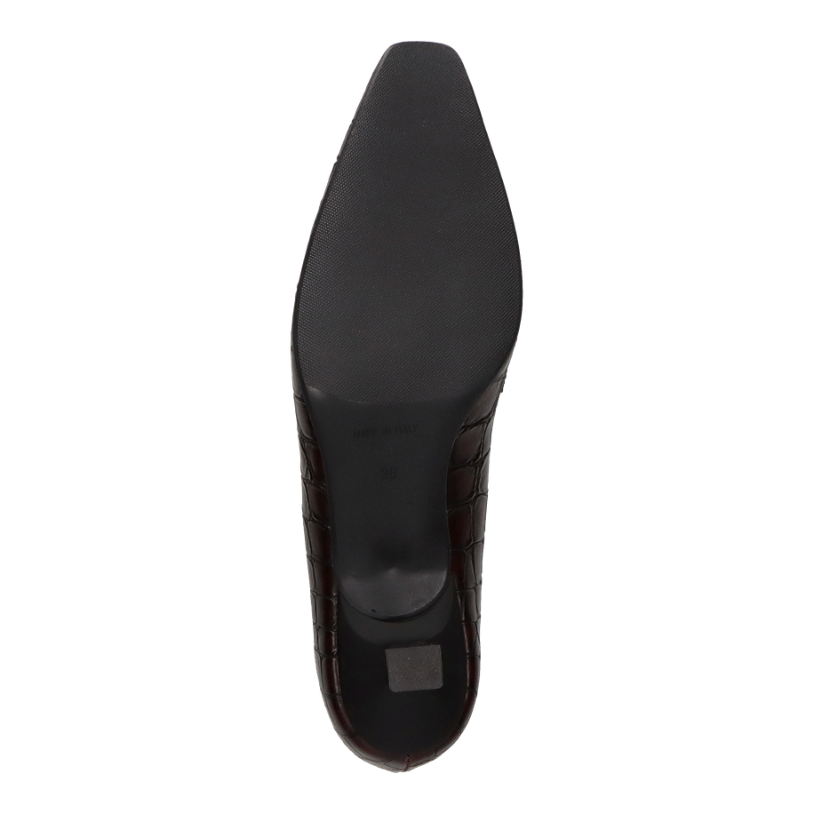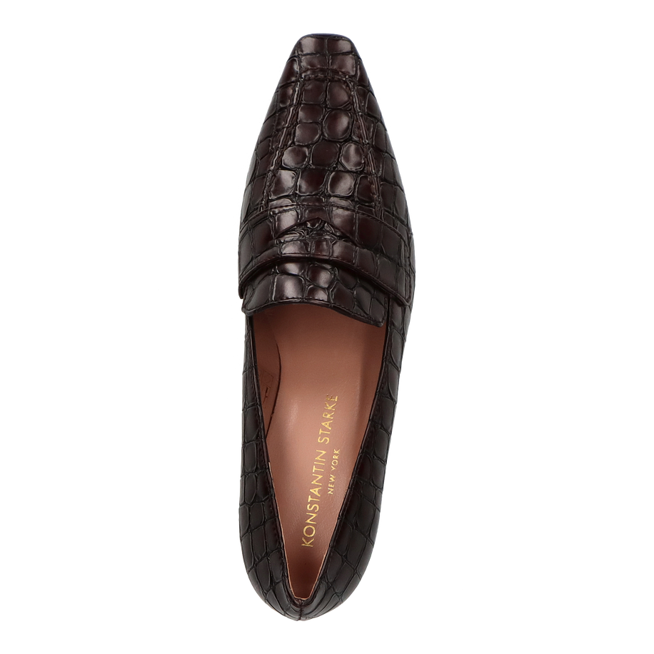 Entdecken Sie den exquisiten Trotteur für Damen von Konstantin Starke in elegantem Dunkelbraun. Diese Schuhe vereinen Stil und Komfort und sind die perfekte Ergänzung für jede Garderobe. Das Obermaterial aus hochwertigem Leder in Krokodilleder-Optik verleiht dem Schuh eine luxuriöse Note, während das Innenfutter und die Innensohle aus Leder für ein angenehmes Tragegefühl sorgen. Mit einer Absatzhöhe von 4,5 cm bietet dieser Trotteur genau die richtige Balance zwischen Eleganz und Bequemlichkeit. Die Gummisohle sorgt für sicheren Halt und Langlebigkeit. Ob im Büro oder bei besonderen Anlässen, dieser Schuh ist ein stilvoller Begleiter, der durch sein zeitloses Design überzeugt.