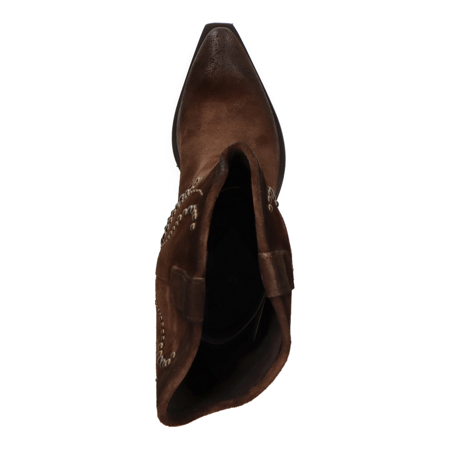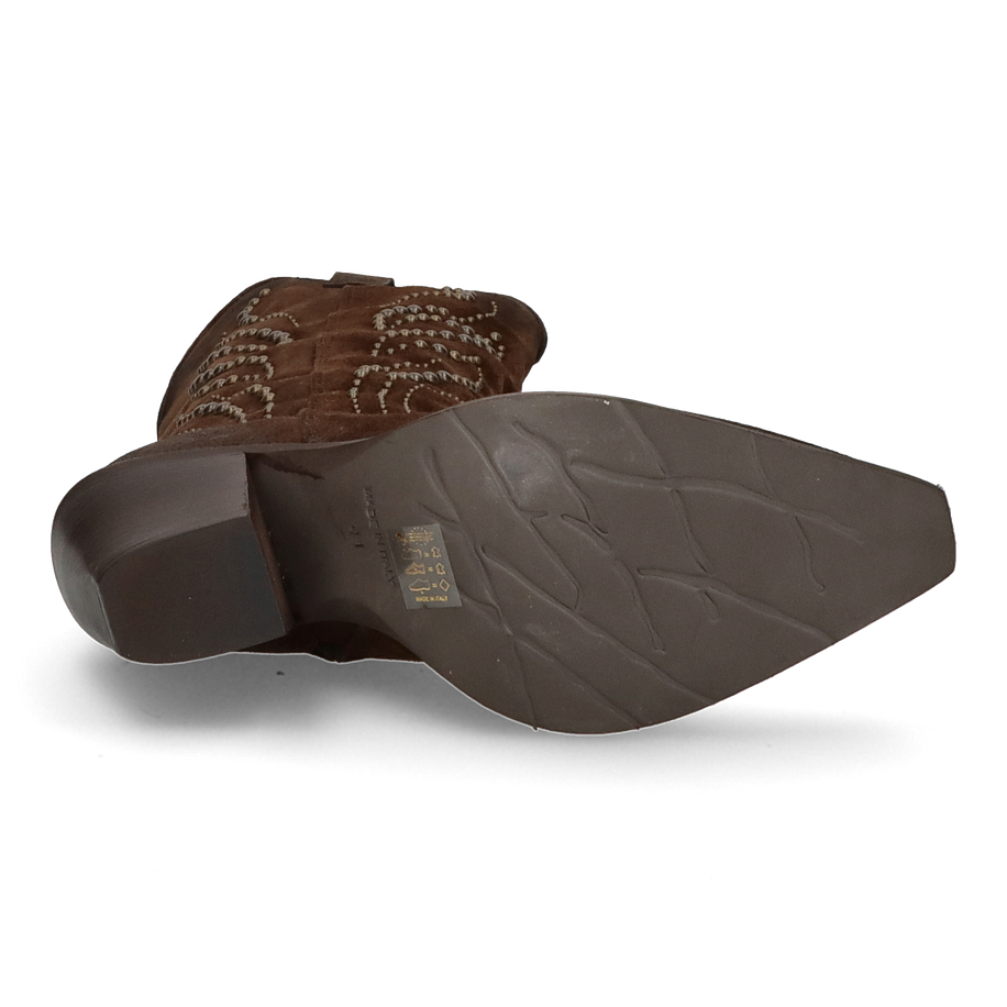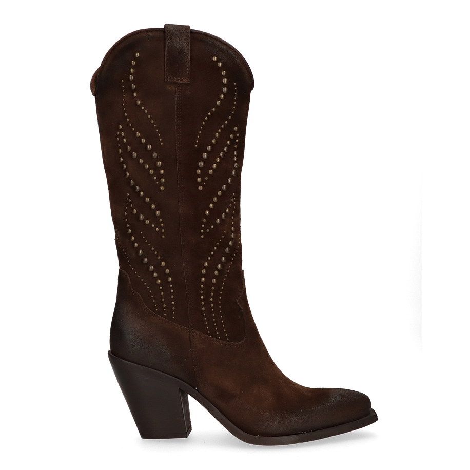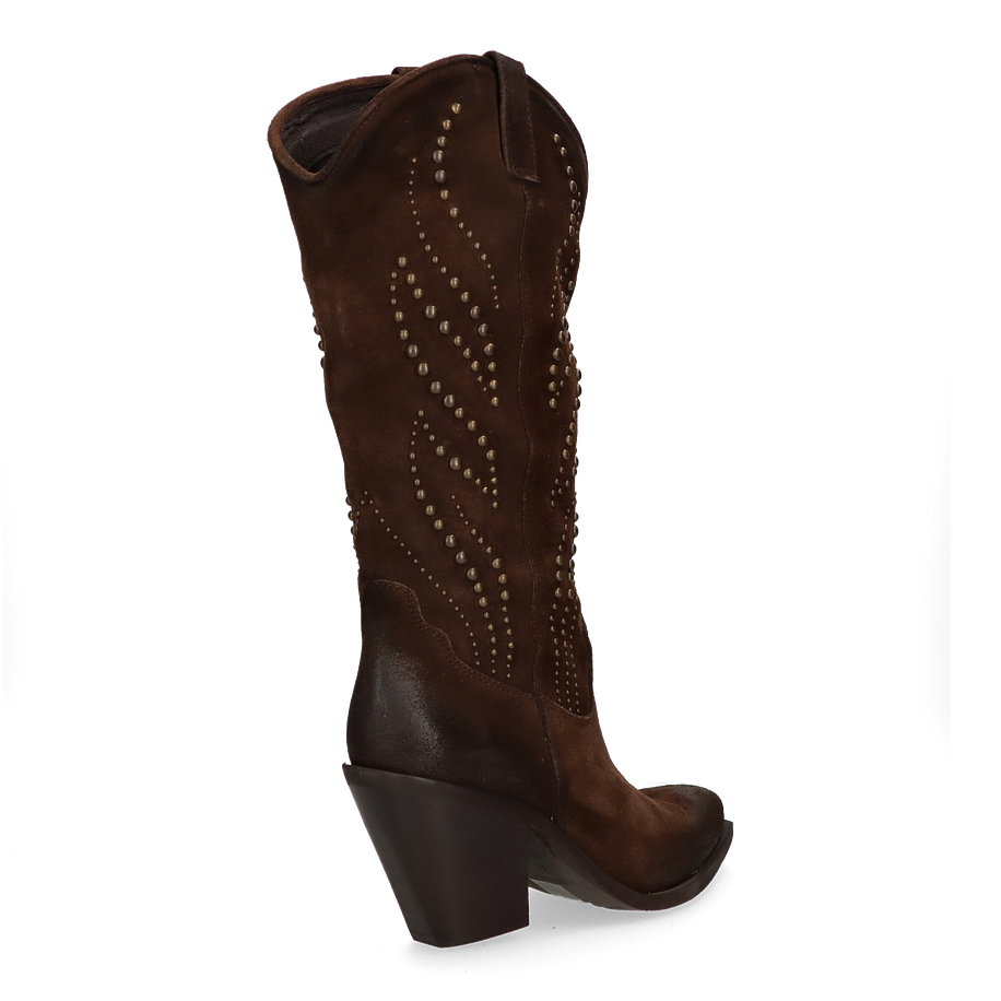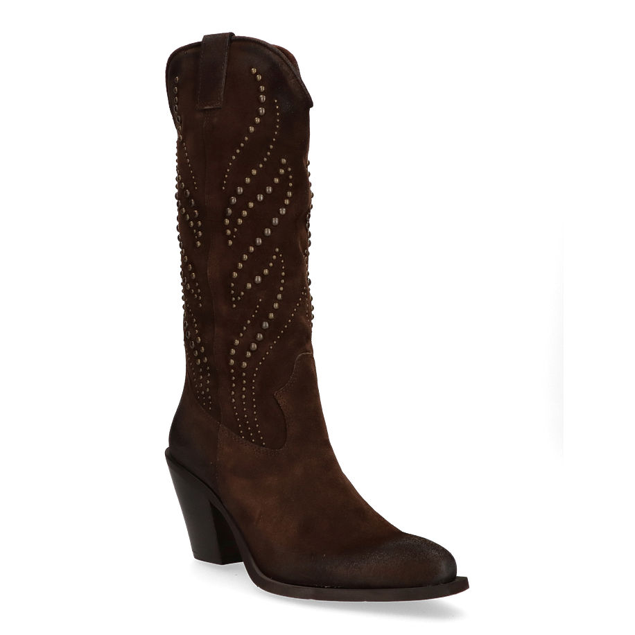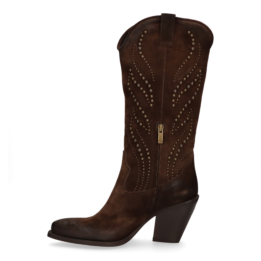 Entdecken Sie die Western Boots von Konstantin Starke, perfekt für Damen. Diese dunkelbraunen Stiefel bestechen durch ihre hochwertige Verarbeitung aus Leder, das sowohl für das Obermaterial als auch für das Innenfutter und die Innensohle verwendet wird. Der 8 cm hohe Absatz und die 32 cm hohe Schafthöhe verleihen Ihnen eine elegante Silhouette, während die 34 cm Schaftweite für optimalen Tragekomfort sorgt. Die robuste Gummisohle bietet hervorragende Haltbarkeit und Stabilität. Ein besonderes Highlight sind die Nietenverzierungen am Schaft, die den Boots einen einzigartigen, stilvollen Look verleihen. Der praktische Reißverschluss an der Innenseite erleichtert das An- und Ausziehen. Diese Western Boots sind die perfekte Wahl für modebewusste Frauen, die Wert auf Qualität und Stil legen.