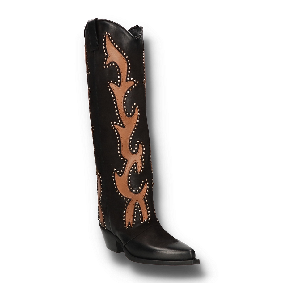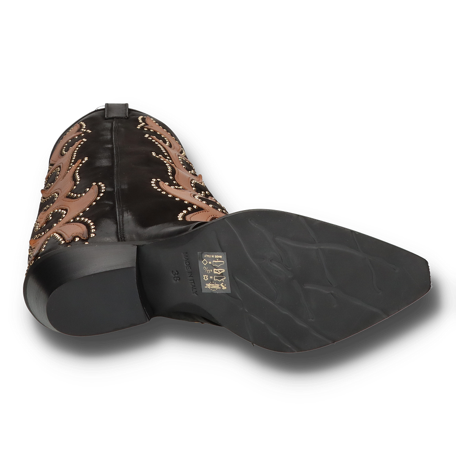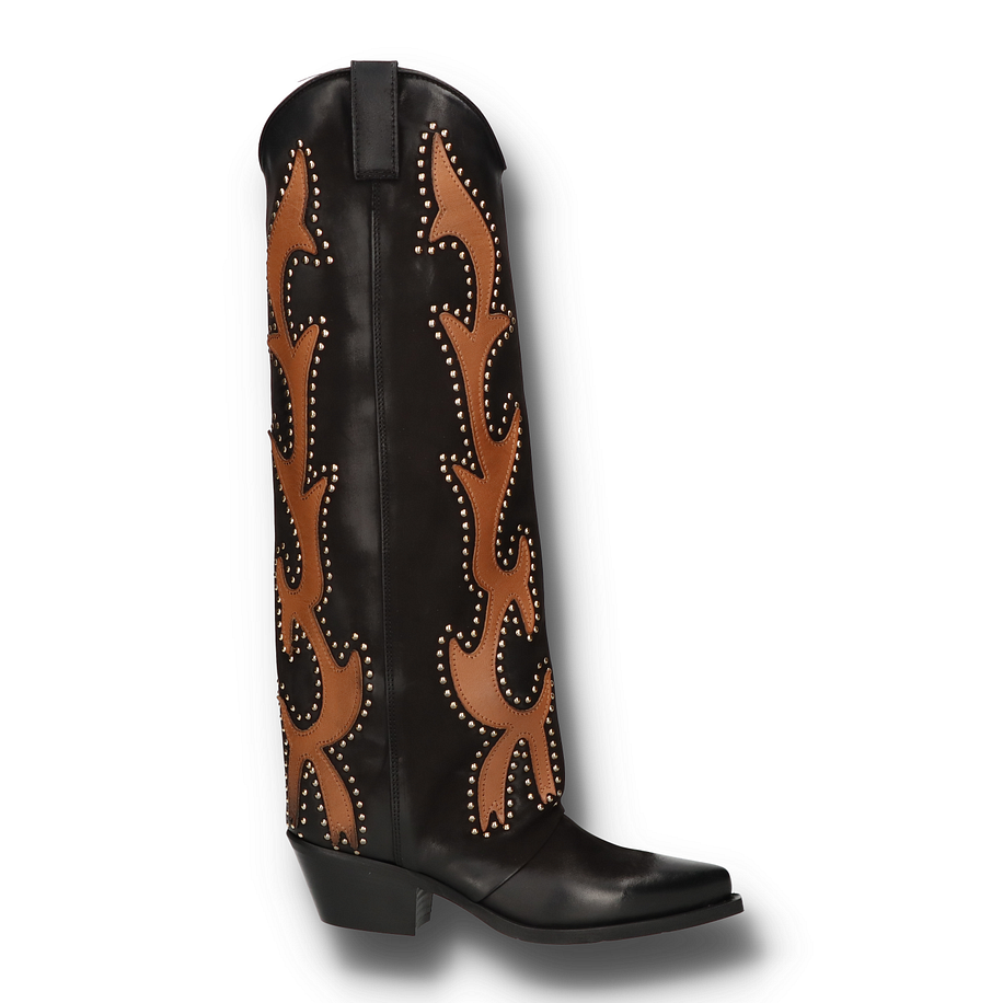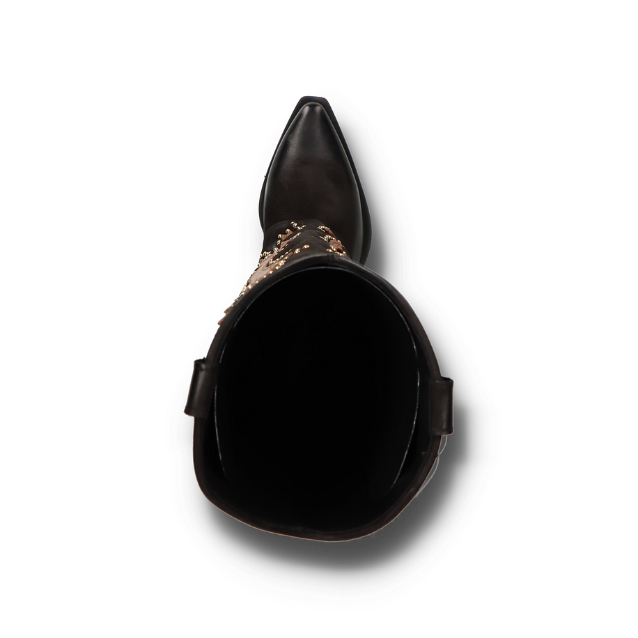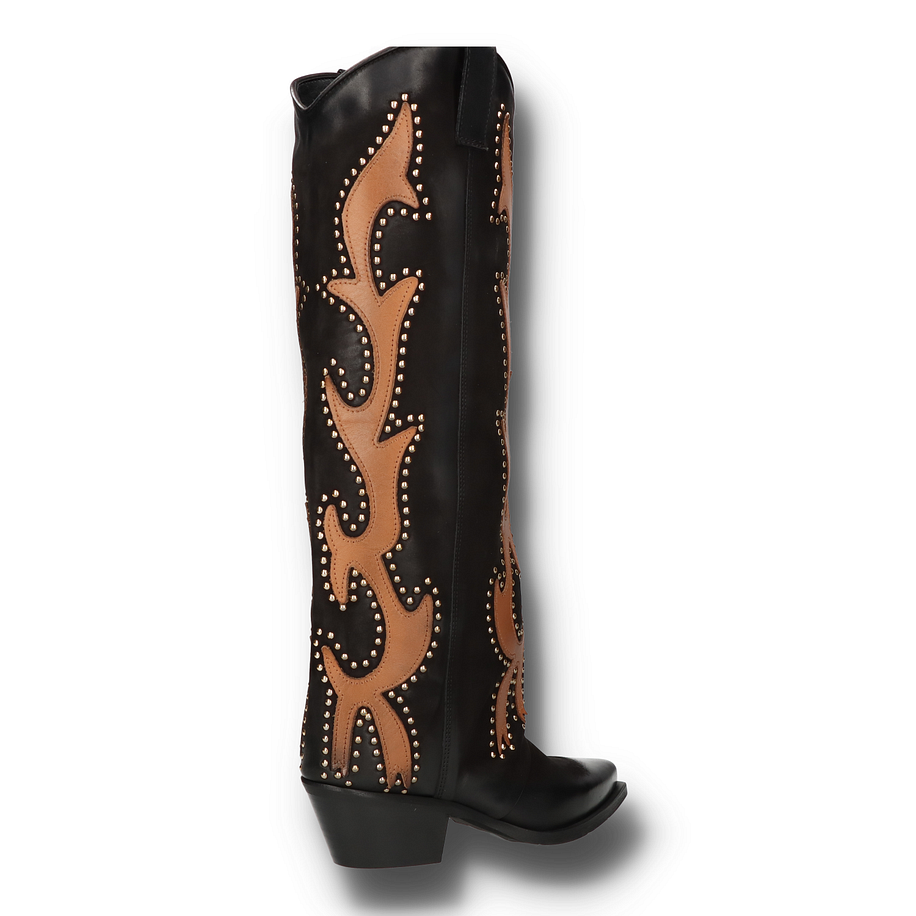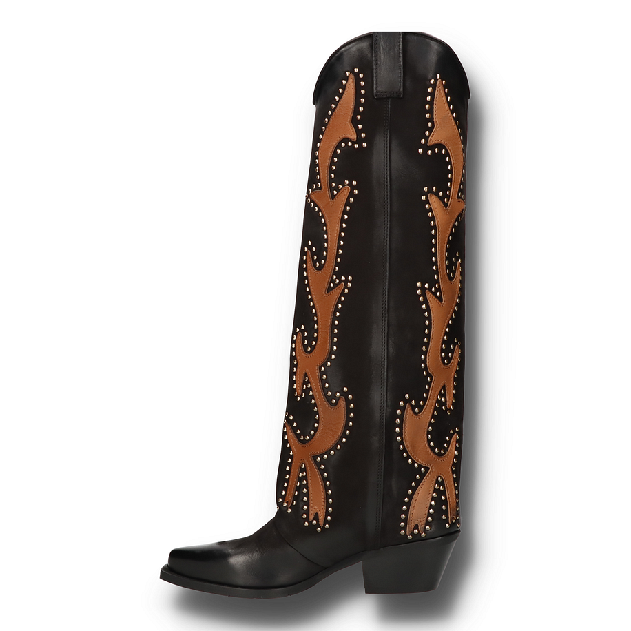 Die Western Boots von Konstantin Starke für Damen sind ein stilvolles Highlight in Ihrem Schuhschrank. Das schwarze Leder wird durch braune Akzente und goldene Nieten im Cowboy-Style perfekt ergänzt. Der hohe Schaft von 43 cm und die Schaftweite von 36 cm sorgen für eine markante Silhouette, während die Plateauhöhe von 1 cm und die Absatzhöhe von 6 cm einen eleganten Auftritt garantieren. Diese Western Boots überzeugen nicht nur durch ihr Design, sondern auch durch ihre hochwertigen Materialien. Das Obermaterial besteht aus robustem Leder, das Innenmaterial und die Innensohle aus Leder und sonstigem Material bieten hohen Tragekomfort. Die Gummisohle sorgt für sicheren Halt auf verschiedenen Untergründen. Mit diesen Boots setzen Sie ein modisches Statement und genießen gleichzeitig höchsten Komfort.