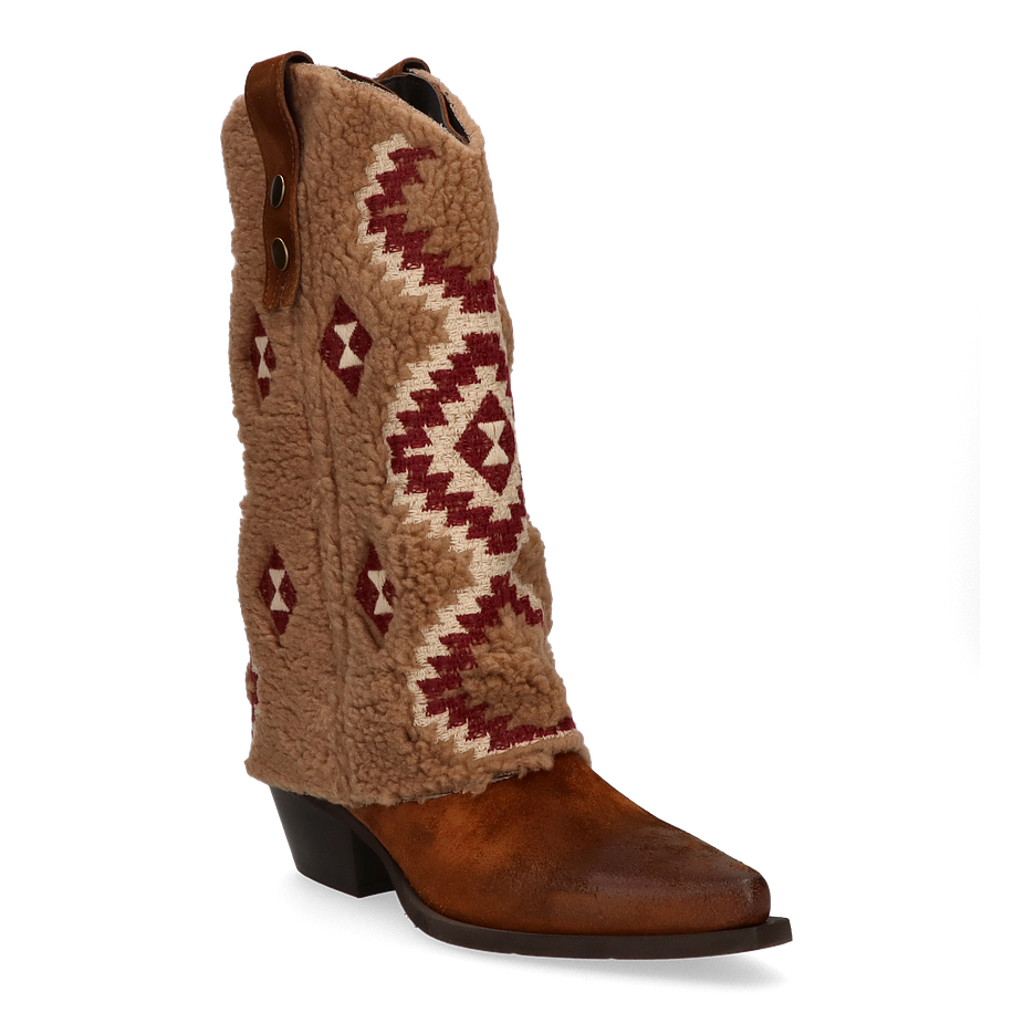 Entdecken Sie die exquisiten Western Boots für Damen von Konstantin Starke in einem auffälligen braun-bunten Design. Diese stilvollen Stiefel zeichnen sich durch ihre hochwertige Verarbeitung aus Leder und Textil aus, die sowohl Langlebigkeit als auch Komfort gewährleistet. Der 4,5 cm hohe Absatz verleiht Ihnen eine elegante Silhouette, während der 30 cm hohe Schaft und die 34 cm breite Schaftweite für eine bequeme Passform sorgen. Das Innenfutter und die Innensohle aus Leder bieten ein luxuriöses Tragegefühl. Die robuste Gummisohle sorgt für hervorragende Traktion und Stabilität. Ein besonderes Highlight ist der Teddyfell-Schaftüberzug, der den Stiefeln eine einzigartige und modische Note verleiht. Perfekt für stilbewusste Damen, die Wert auf Qualität und Design legen.