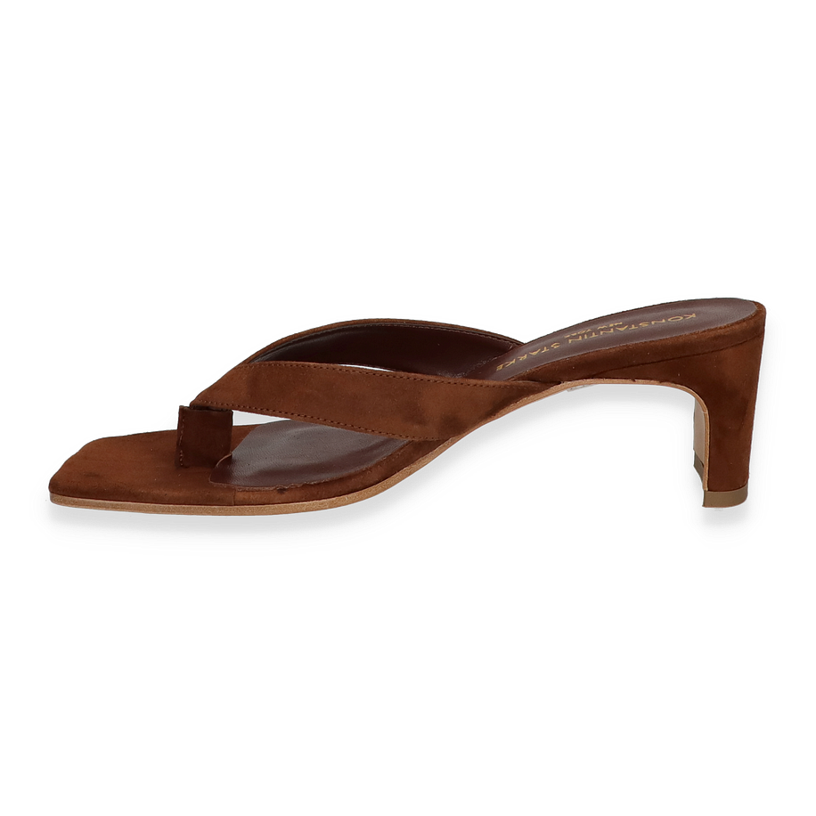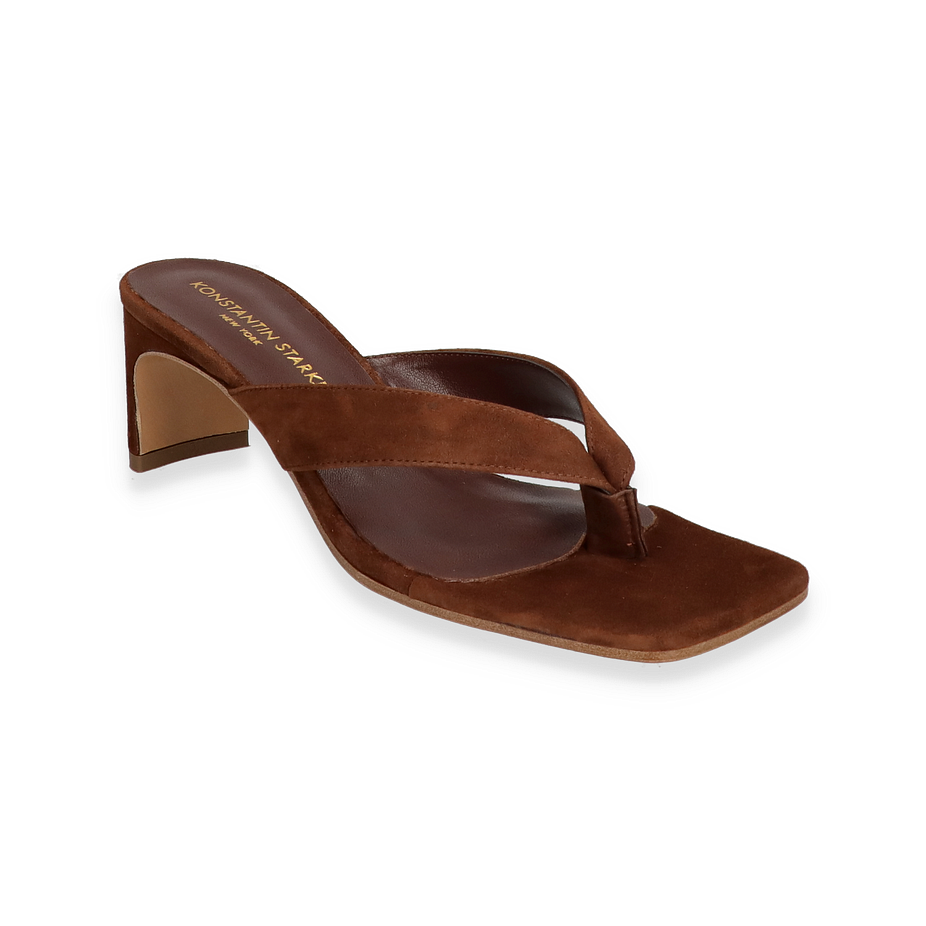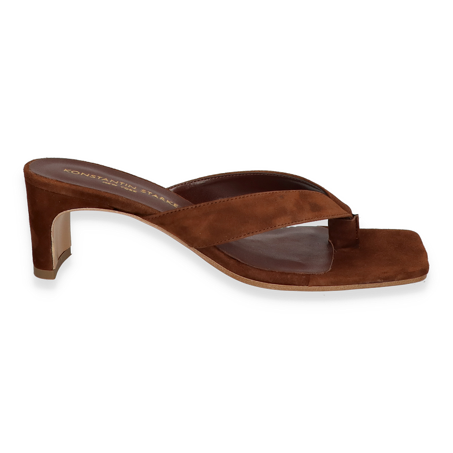 Entdecken Sie die elegante Zehentrenner-Sandale von Konstantin Starke für Damen, die in einem edlen Dunkelbraun erstrahlt. Diese Sandale vereint Stil und Komfort mit einem raffinierten Design, das durch die hochwertige Verarbeitung des Leders besticht. Der 6 cm hohe Absatz verleiht eine anmutige Silhouette, während die geschmackvolle Farbgebung vielseitig kombinierbar ist und jedem Outfit eine luxuriöse Note verleiht.
