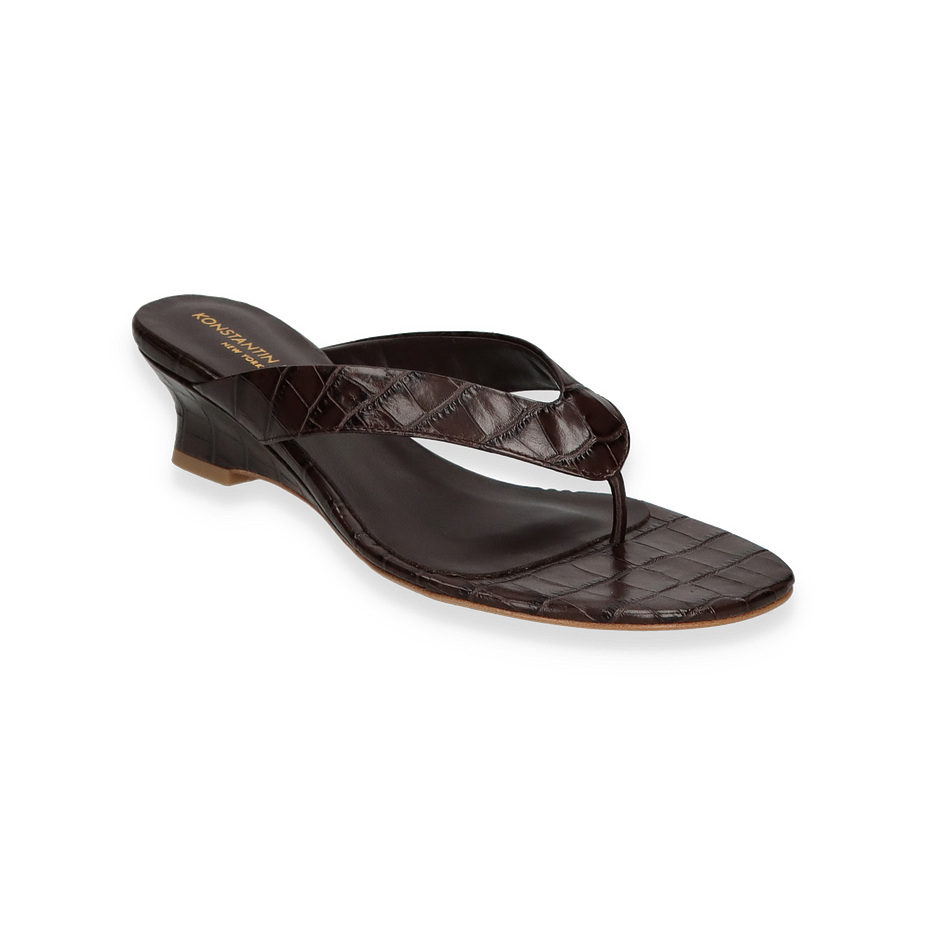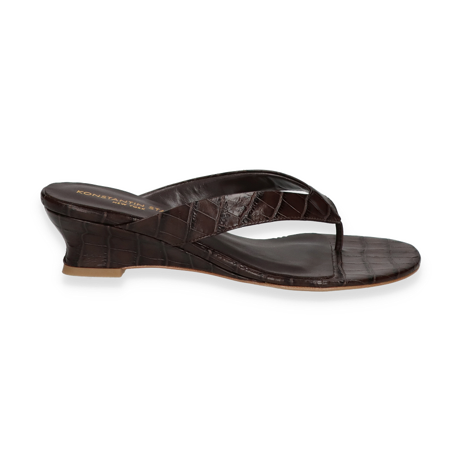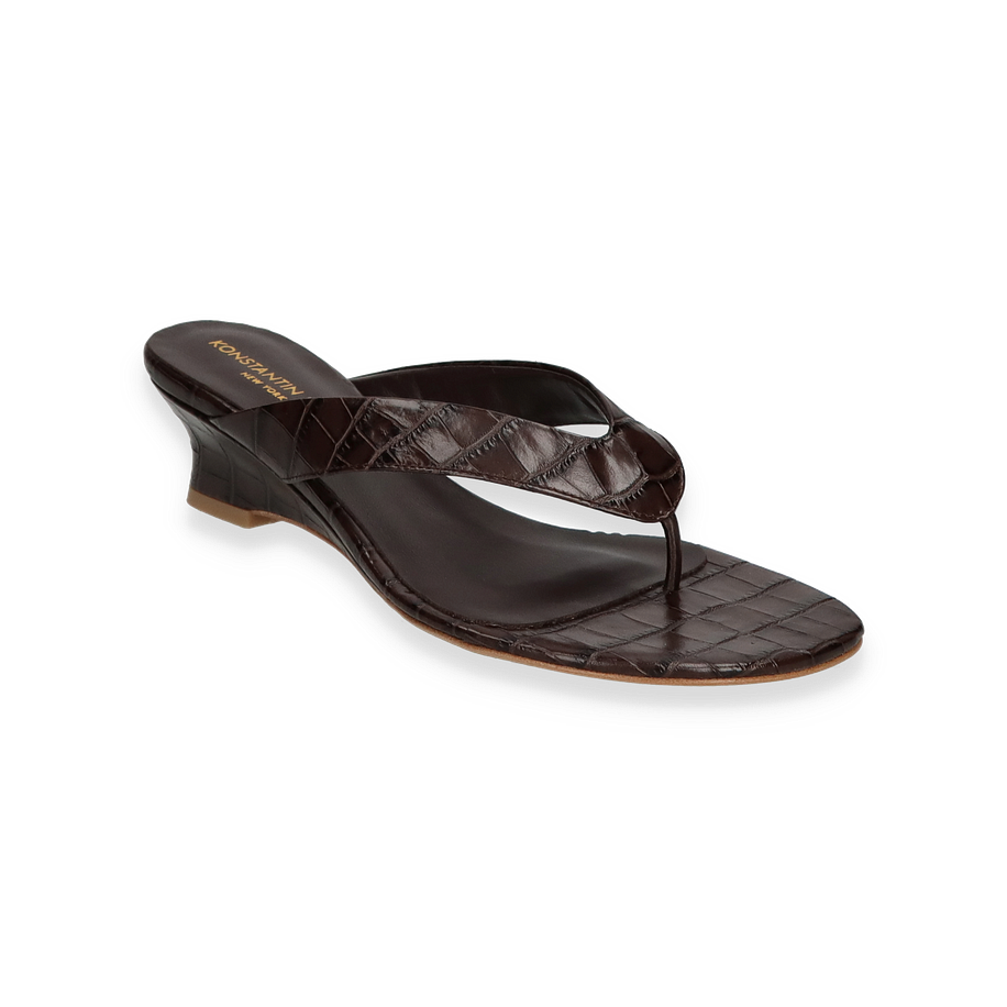 Preis inkl. MwSt.Entdecken Sie die exquisiten Zehentrenner von Konstantin Starke für Damen in einem eleganten Dunkelbraun. Diese stilvollen Sandalen zeichnen sich durch ihr raffiniertes Design aus, das durch das hochwertige Leder der Oberseite unterstrichen wird. Der 4,5 cm hohe Absatz verleiht Ihnen eine subtile Erhöhung, während die feine Verarbeitung und die luxuriöse Optik für einen anspruchsvollen Look sorgen. Perfekt für sommerliche Anlässe, bei denen Stil und Komfort gleichermaßen gefragt sind.