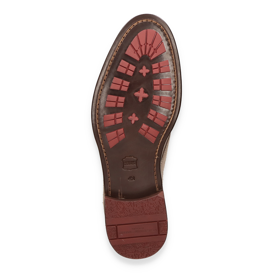 Diese Schnürboots überzeugen durch ihre erstklassigen Materialien. Das Innenfutter aus Leder garantiert ein angenehmes Tragegefühl und optimale Atmungsaktivität. Die Innensohle aus Leder sorgt für zusätzlichen Komfort, während die robuste Leder/Gummisohle für sicheren Halt auf verschiedenen Untergründen sorgt. Diese Schuhe vereinen Stil und Funktionalität und sind eine ausgezeichnete Wahl für den modebewussten Herrn.