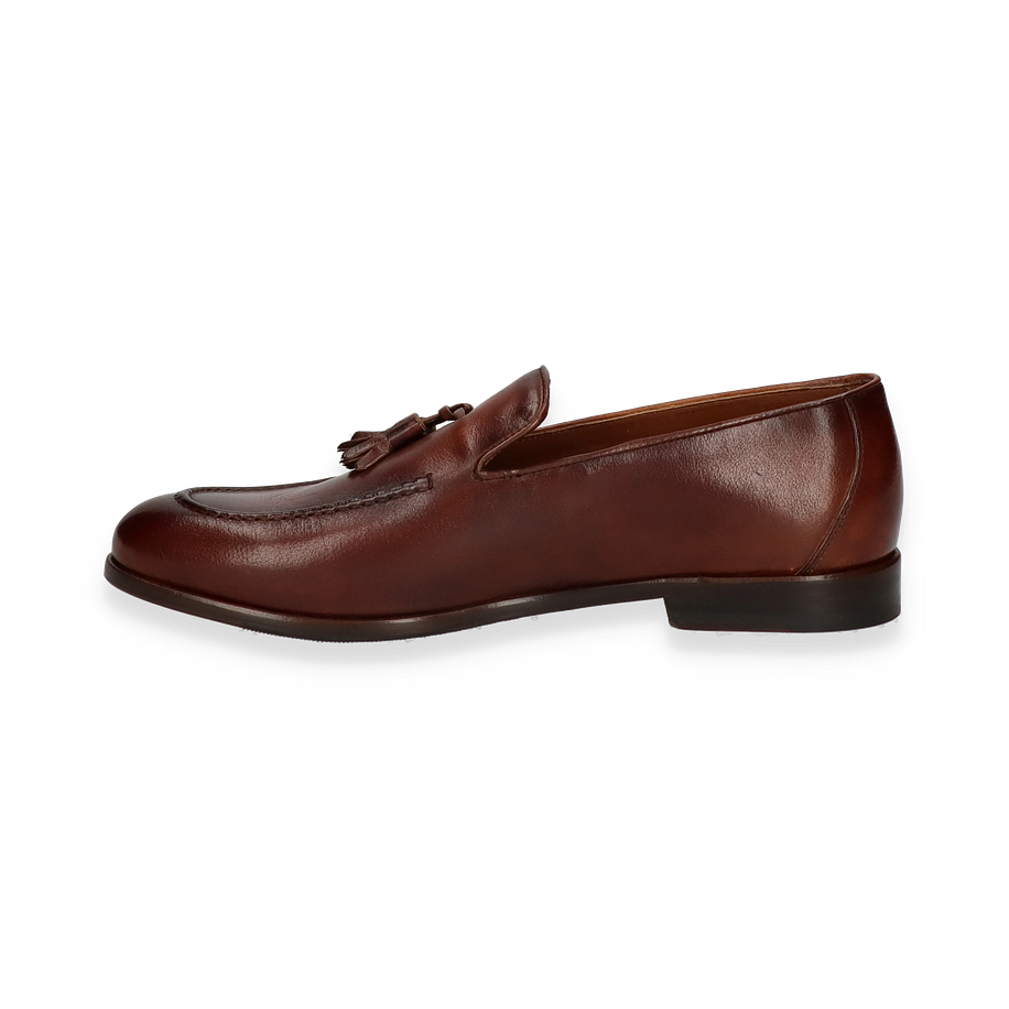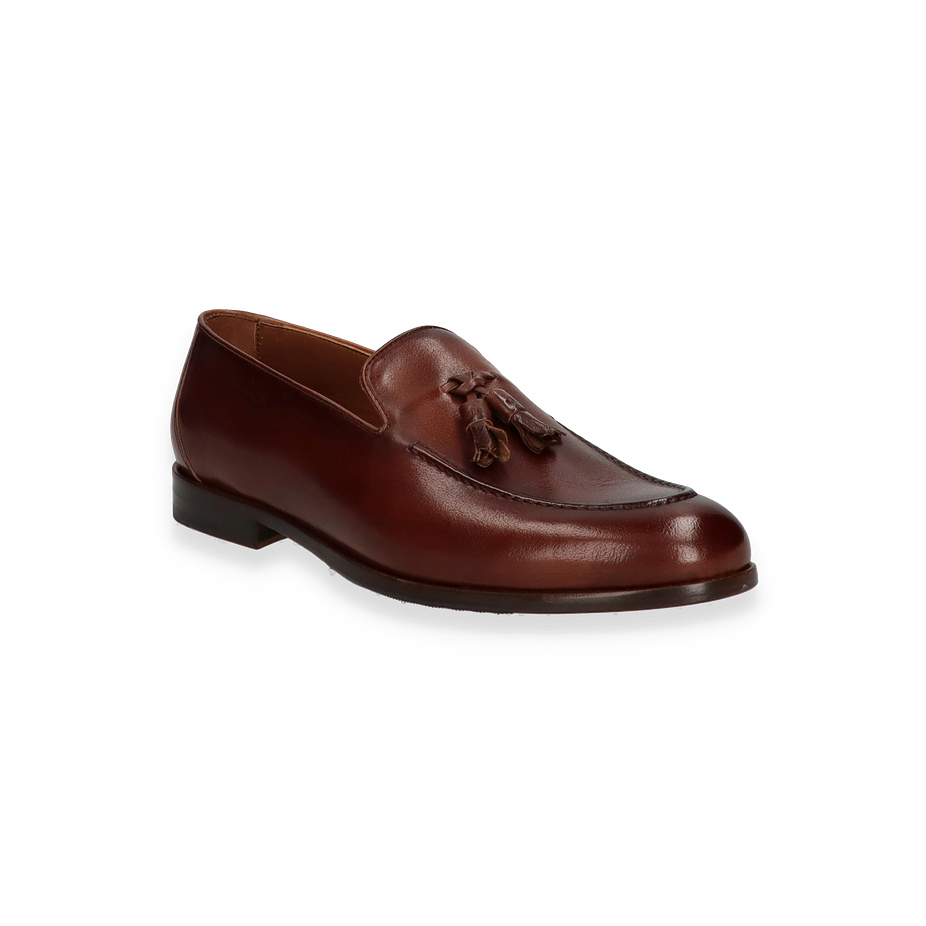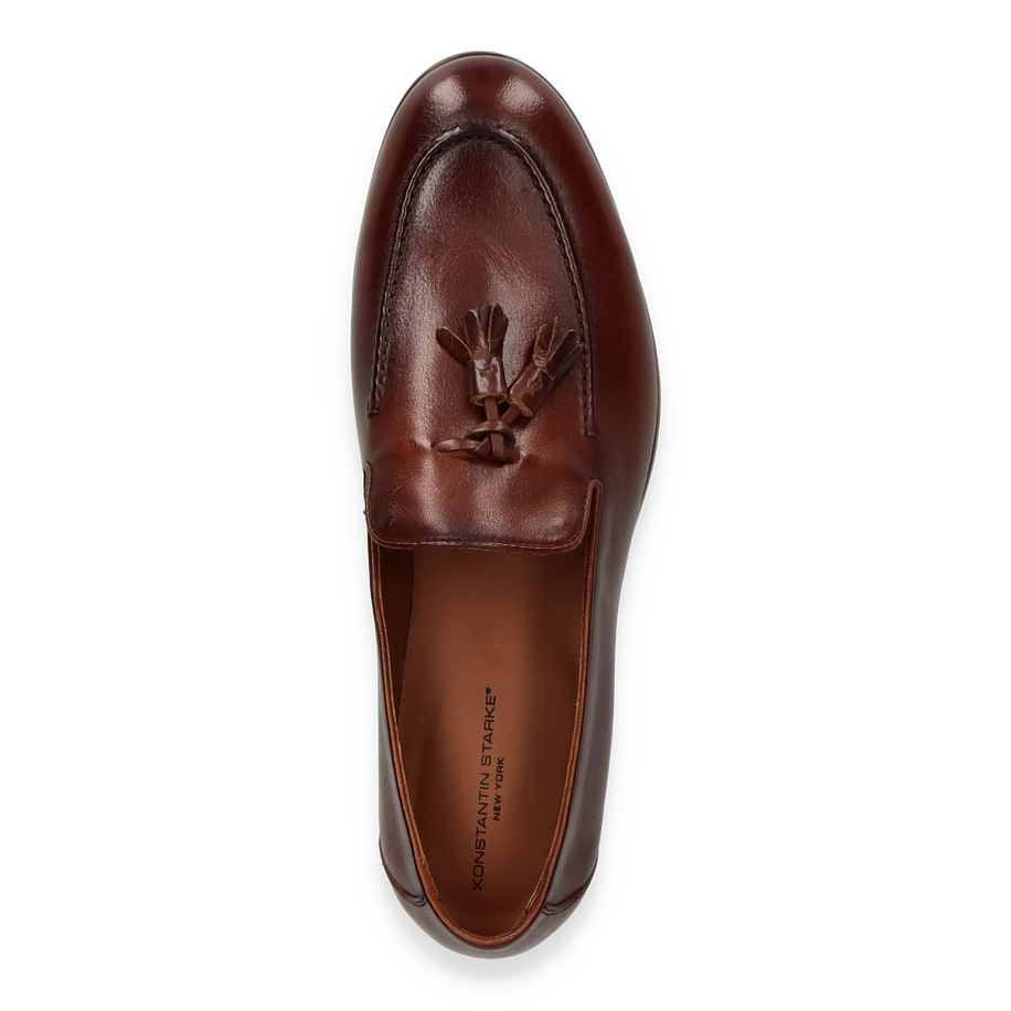 Preis inkl. MwSt.Der Konstantin Starke Slipper für Herren präsentiert sich in einem eleganten mittelbraunen Lederdesign, das sowohl zeitlos als auch stilvoll ist. Die feine Verarbeitung und die dezente Quaste auf dem Spann verleihen dem Schuh eine besondere Note, die ihn ideal für formelle Anlässe oder den gehobenen Freizeitlook macht. Die schlanke Silhouette und der niedrige Absatz von 2 cm bieten eine perfekte Balance zwischen Komfort und Eleganz.