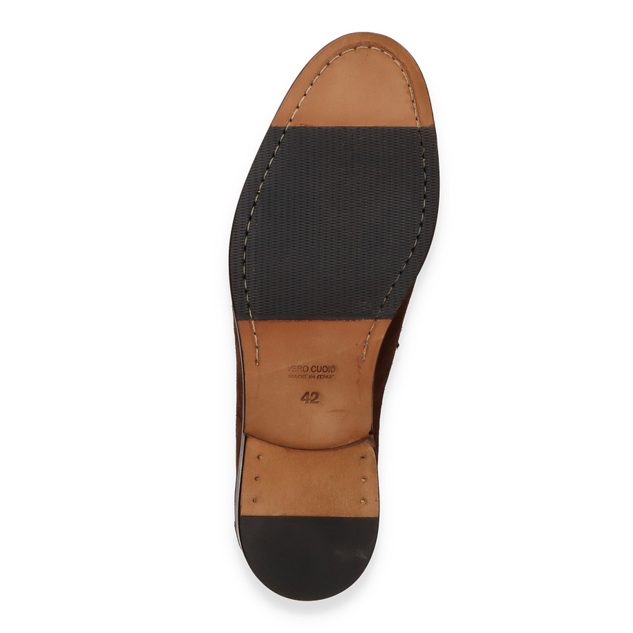 Preis inkl. MwSt.Die Konstantin Starke Slipper für Herren in warmem Braun aus erstklassigem Wildleder strahlen eine rustikale Eleganz aus. Die feine Struktur des Materials verleiht diesen Slippern eine natürliche Raffinesse, während die braune Farbe ihnen einen klassischen Touch verleiht. Die bequemen Gummisohlen bieten angenehmen Tragekomfort, und das mühelose Hineinschlüpfen macht sie zu unkomplizierten, dennoch stilvollen Begleitern für entspannte Freizeitaktivitäten.