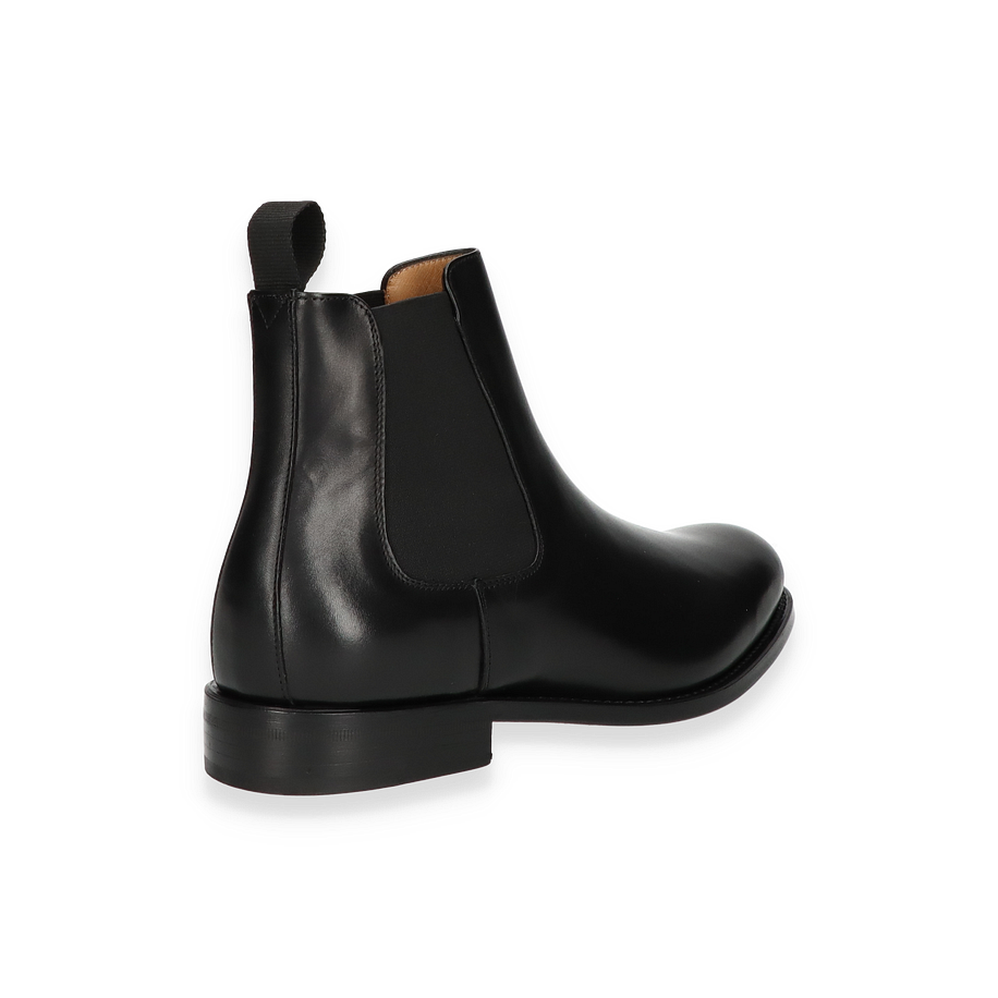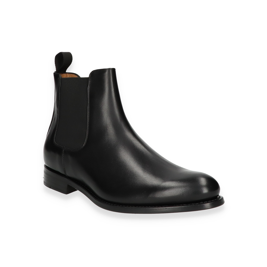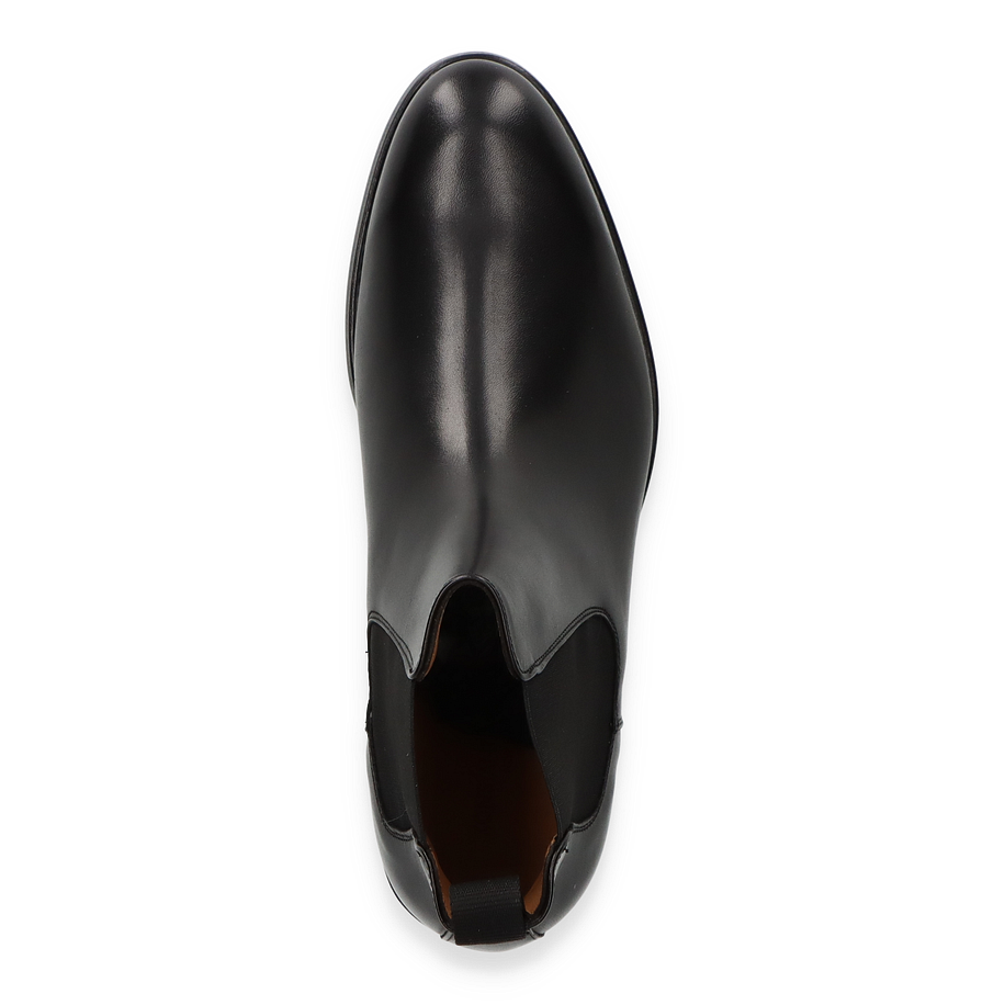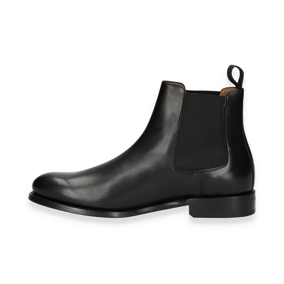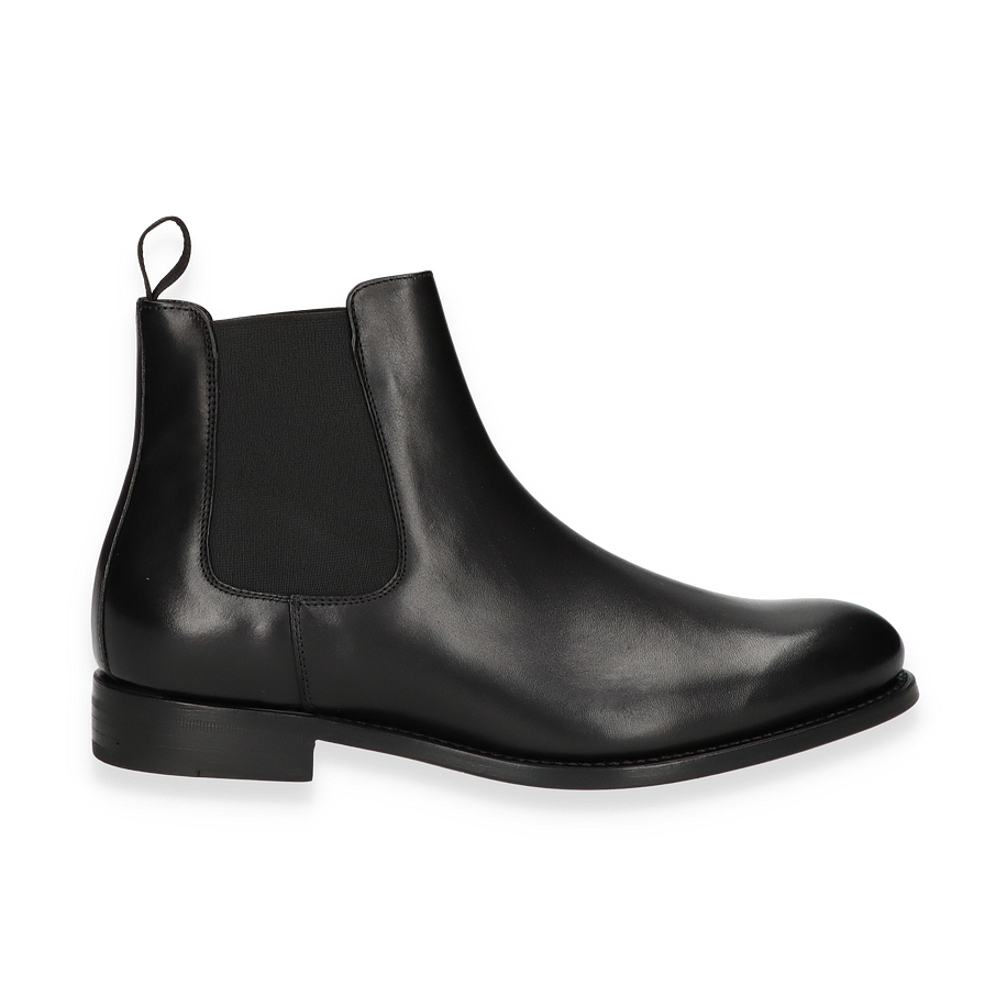 Entdecken Sie die eleganten Stiefeletten für Herren, die durch ihr zeitloses Design und hochwertige Verarbeitung überzeugen. Gefertigt aus edlem, schwarzem Leder, bieten diese Schuhe eine glatte Oberfläche, die sowohl stilvoll als auch vielseitig ist. Der elastische Einsatz an der Seite sorgt für einen bequemen Einstieg und verleiht dem Schuh einen klassischen Chelsea-Look. Die robuste Sohle und der dezente Absatz bieten optimalen Halt und Komfort für den ganzen Tag.