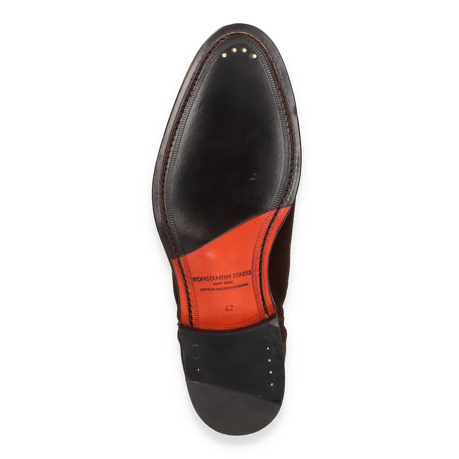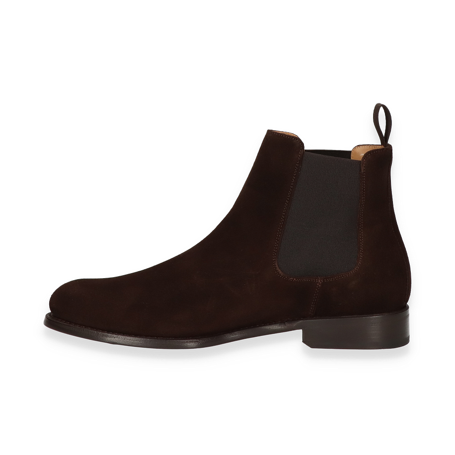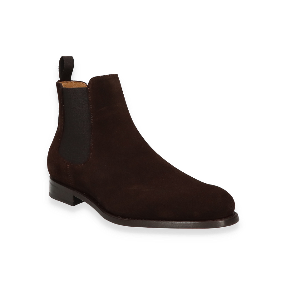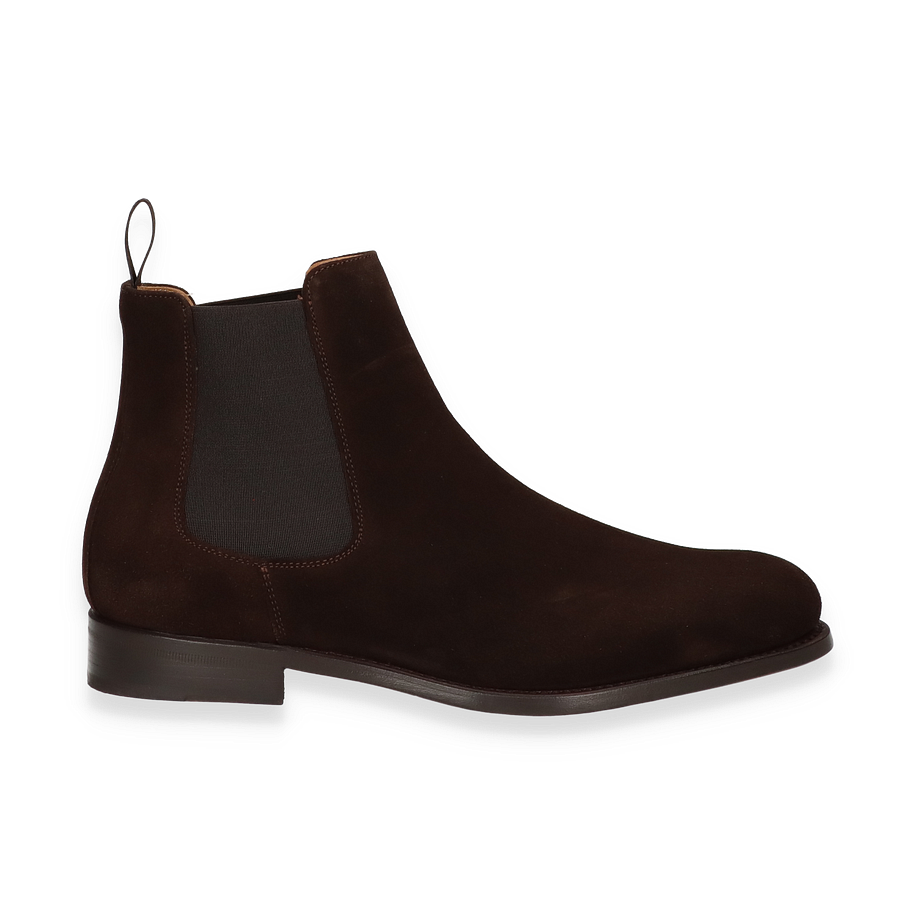 Entdecken Sie die eleganten Stiefeletten für Herren, die durch ihr zeitloses Design und die hochwertige Verarbeitung überzeugen. Das dunkelbraune Wildleder verleiht diesen Schuhen eine edle Optik, während die elastischen Seiteneinsätze für einen komfortablen Einstieg sorgen. Die schlanke Silhouette und die dezente Nahtführung unterstreichen den klassischen Stil, der sowohl für formelle Anlässe als auch für den Alltag geeignet ist.