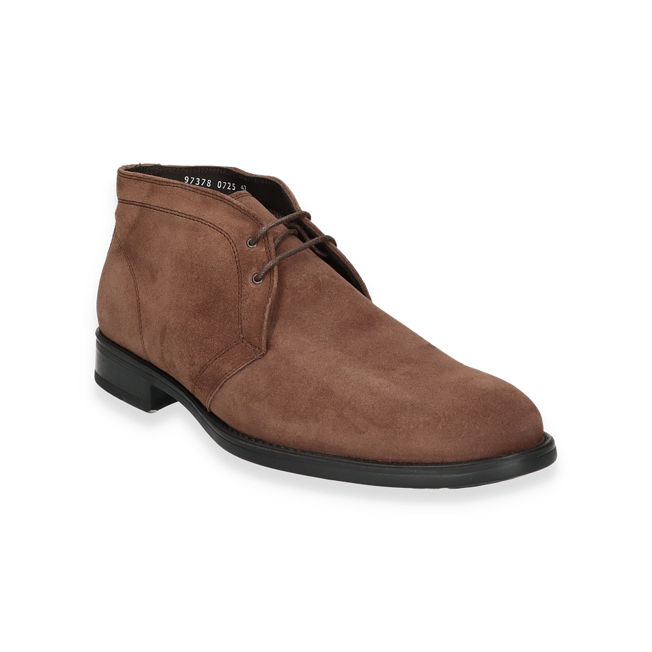 Preis inkl. MwSt.Die Stiefeletten von Konstantin Starke präsentieren sich in einem eleganten Dunkelbraun, das zeitlose Raffinesse ausstrahlt. Das Obermaterial aus hochwertigem Leder verleiht den Schuhen eine luxuriöse Optik und sorgt für Langlebigkeit. Mit einer Absatzhöhe von 3 cm bieten sie eine dezente Erhöhung, die den Tragekomfort nicht beeinträchtigt. Die schlichte Schnürung und die klare Linienführung unterstreichen das klassische Design, das sich mühelos in jede Garderobe für Herren integrieren lässt.