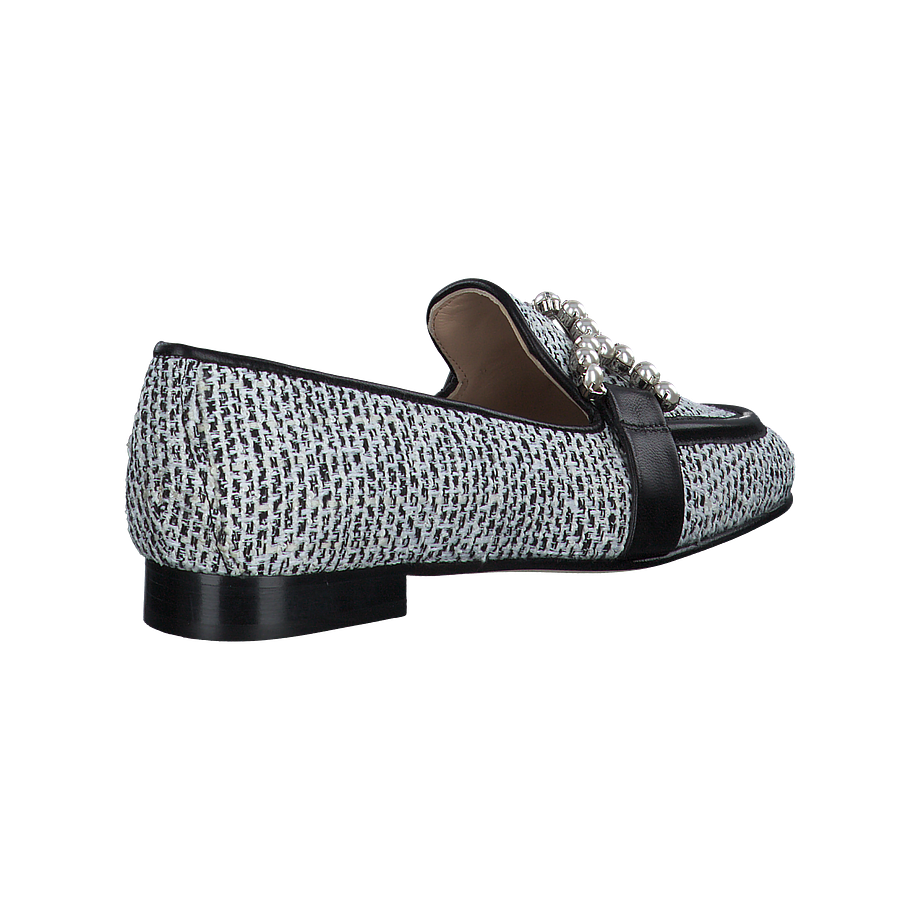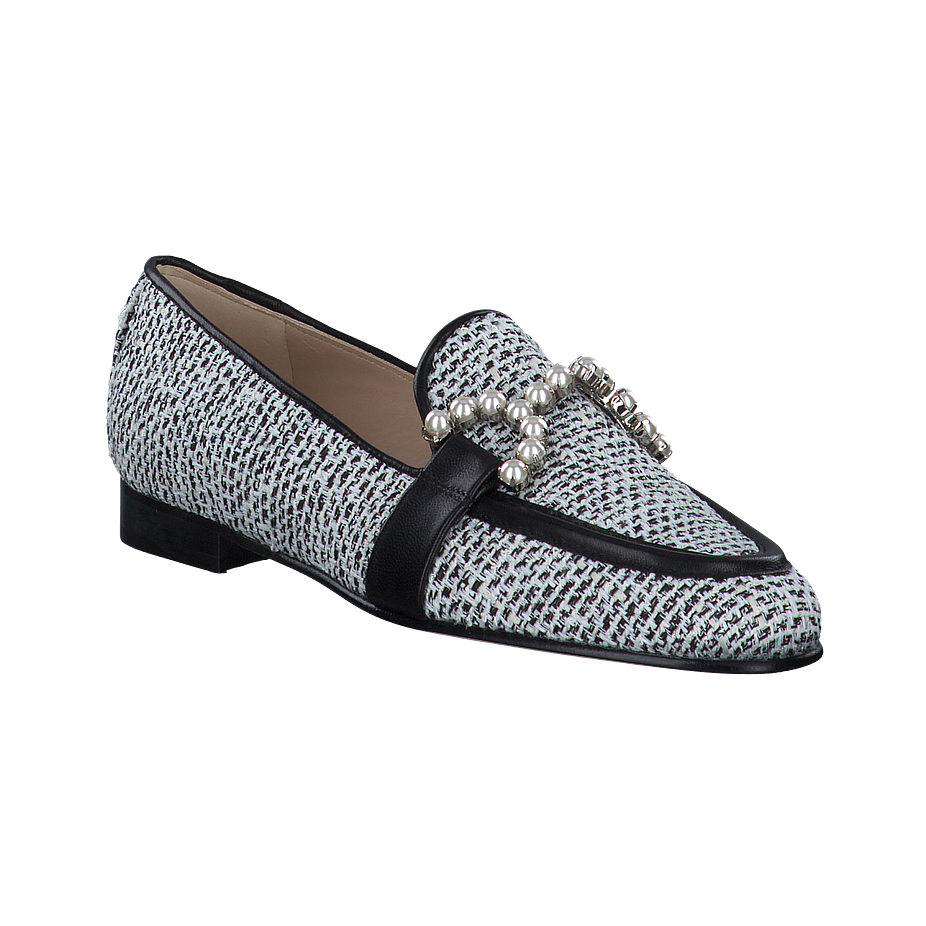 Entdecken Sie den Joys Slipper für Damen von Konstantin Starke, ein eleganter und stilvoller Schuh, der Komfort und Mode vereint. Hergestellt aus hochwertigem Textil in den Farben Schwarz und Weiß, bietet dieser Schuh eine bequeme Passform und ein zeitloses Design. Die Innensohle und das Futter aus Leder sorgen für zusätzlichen Komfort und Haltbarkeit. Mit einer Absatzhöhe von 2 cm ist dieser Slipper ideal für den täglichen Gebrauch. Die Sohle aus Leder garantiert eine lange Lebensdauer. Ein besonderes Highlight ist die Perlenverzierung, die diesem Schuh einen Hauch von Eleganz verleiht.