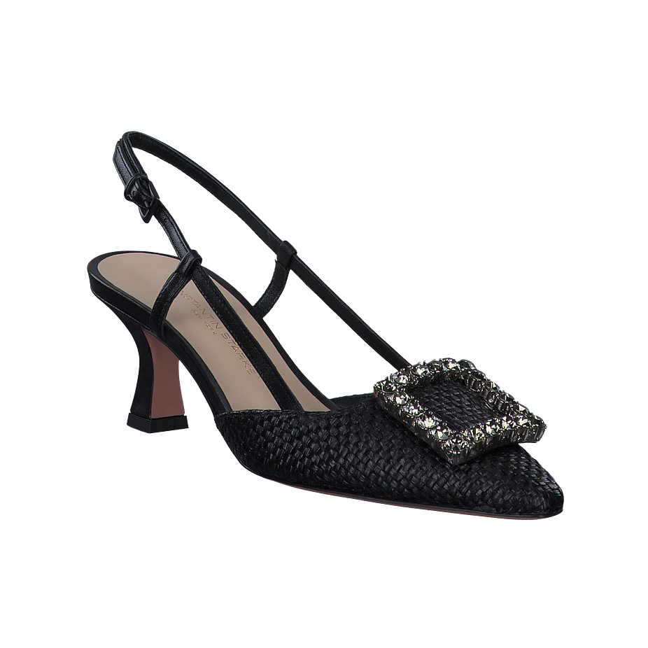 Entdecken Sie die eleganten Stefi Slingpumps von Konstantin Starke für Damen. Diese schicken Schuhe in schwarzem Textil sind ein echtes Highlight für jeden Anlass. Die 7 cm hohen Absätze verleihen eine feminine Silhouette, während das Innenfutter und die Innensohle aus Leder für Komfort und Langlebigkeit sorgen. Die Sohle aus Leder garantiert einen sicheren Tritt. Ein besonderes Detail ist die Schnalle mit Strasssteinen, die für einen Hauch von Glamour sorgt. Mit dem Modell Stefi von Konstantin Starke setzen Sie ein modisches Statement.