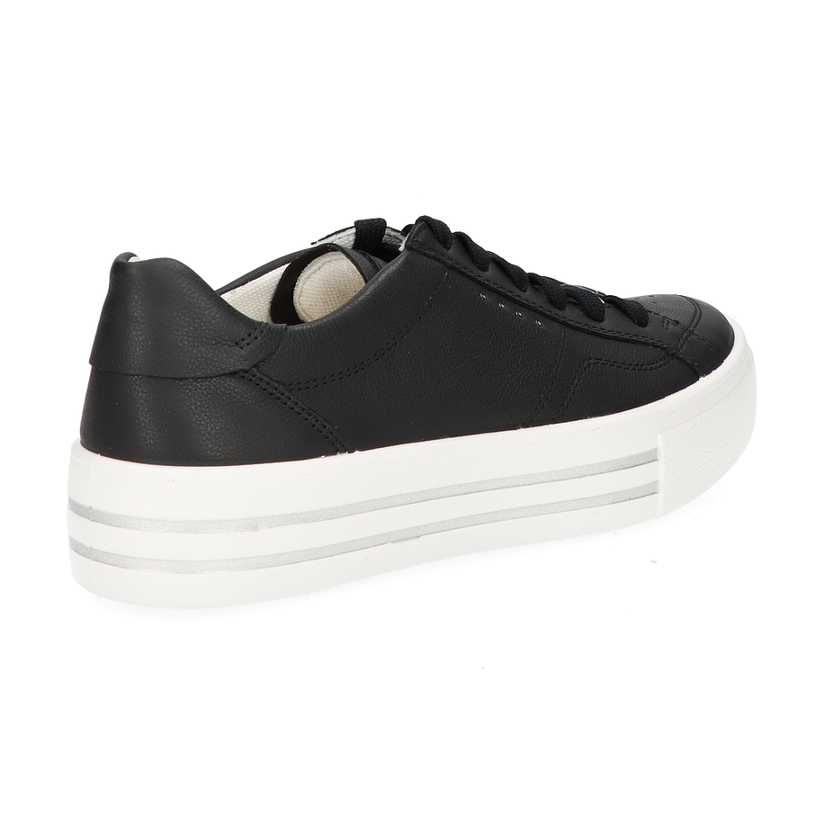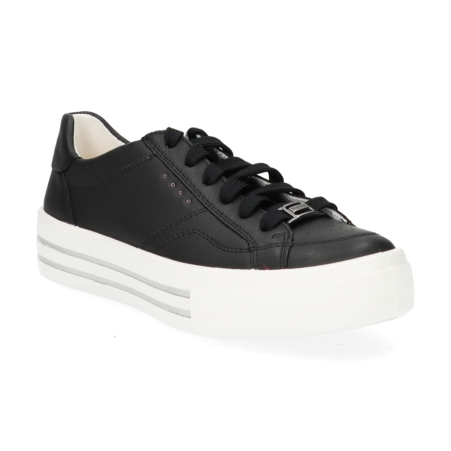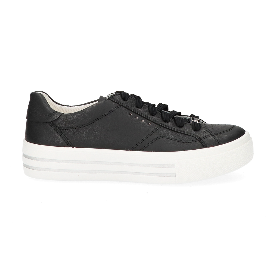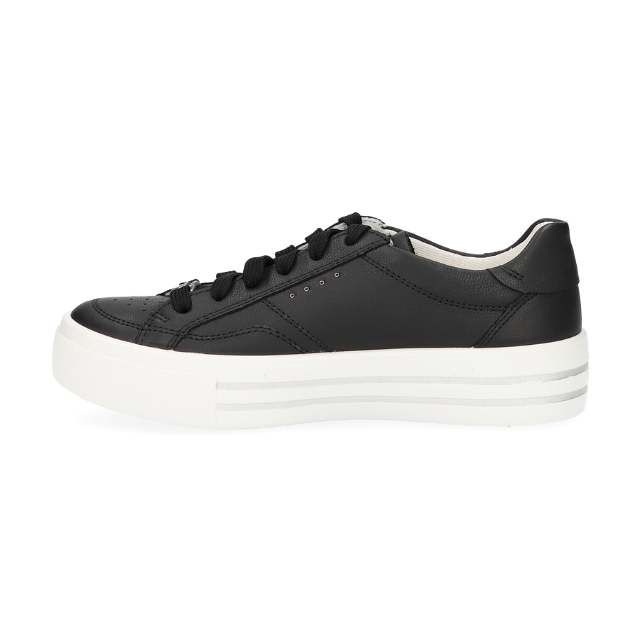 Der Legero Sneaker LIMA in elegantem Schwarz präsentiert sich als stilvolles Accessoire für Damen. Das Obermaterial aus hochwertigem Leder verleiht dem Schuh eine edle Optik, während die dezente Nahtführung und die schlichte Schnürung für einen modernen Look sorgen. Die kontrastierende weiße Sohle mit einem subtilen Streifenmuster unterstreicht das zeitlose Design und bietet gleichzeitig einen modischen Akzent.