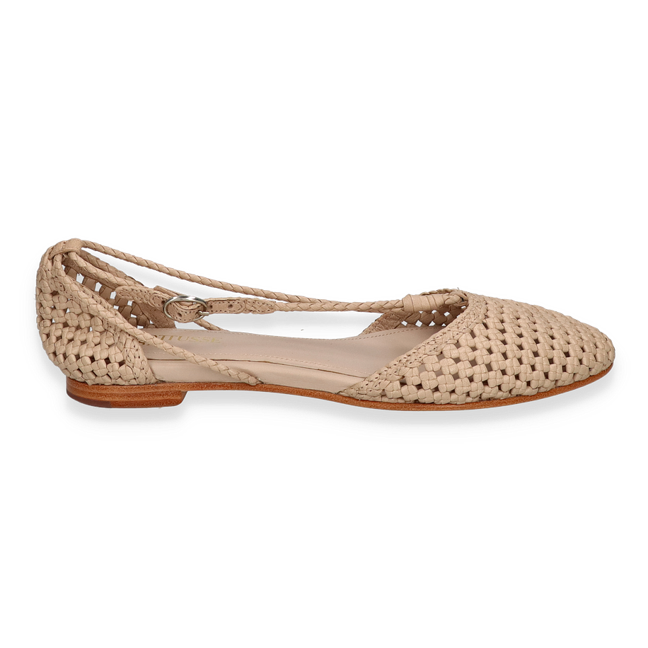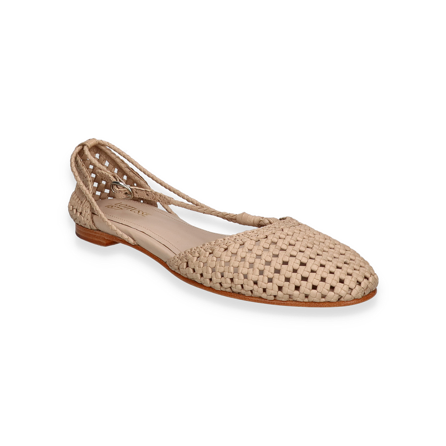 Preis inkl. MwSt.Die Lottusse DELICE Ballerinas für Damen präsentieren sich in einem eleganten Beige, das sich perfekt für jede Gelegenheit eignet. Das geflochtene Design verleiht dem Schuh eine raffinierte Textur, während der schlanke Riemen mit Schnalle für sicheren Halt sorgt. Der flache Absatz von 1 cm bietet Komfort und Stil, ideal für den täglichen Gebrauch oder besondere Anlässe. Die hochwertige Verarbeitung macht diesen Schuh zu einem zeitlosen Begleiter.