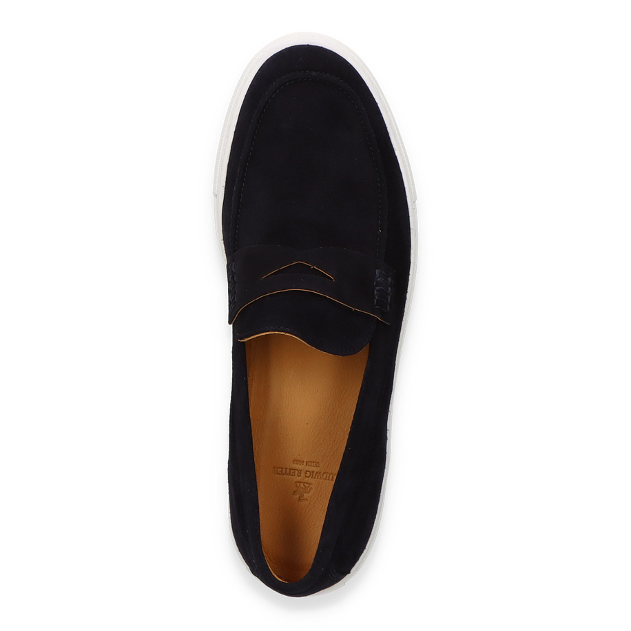 Preis inkl. MwSt.Entdecken Sie den eleganten Slipper von Ludwig Reiter in einem tiefen Dunkelblau, der durch sein minimalistisches Design und seine hochwertige Verarbeitung besticht. Die glatte Lederoberfläche verleiht diesem Schuh eine zeitlose Ästhetik, während die subtile Nahtführung und der klassische Schnitt für einen stilvollen Auftritt sorgen. Die Kombination aus dunklem Obermaterial und heller Sohle schafft einen ansprechenden Kontrast, der diesen Slipper zu einem vielseitigen Begleiter für Herren macht.