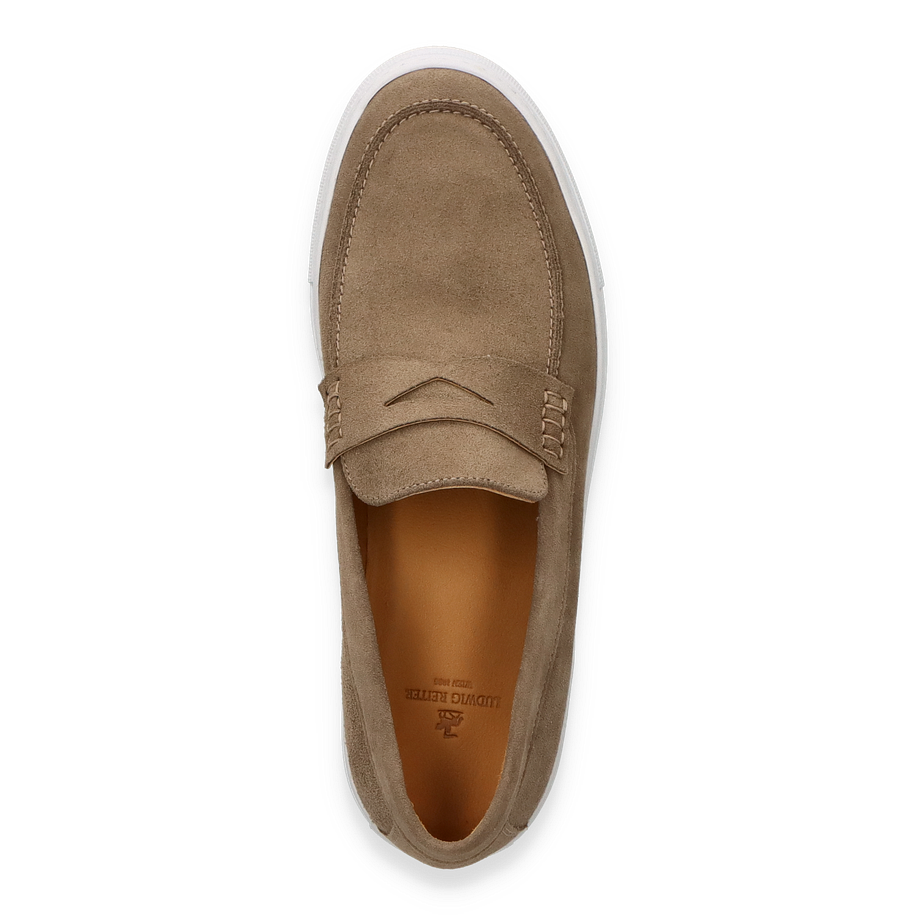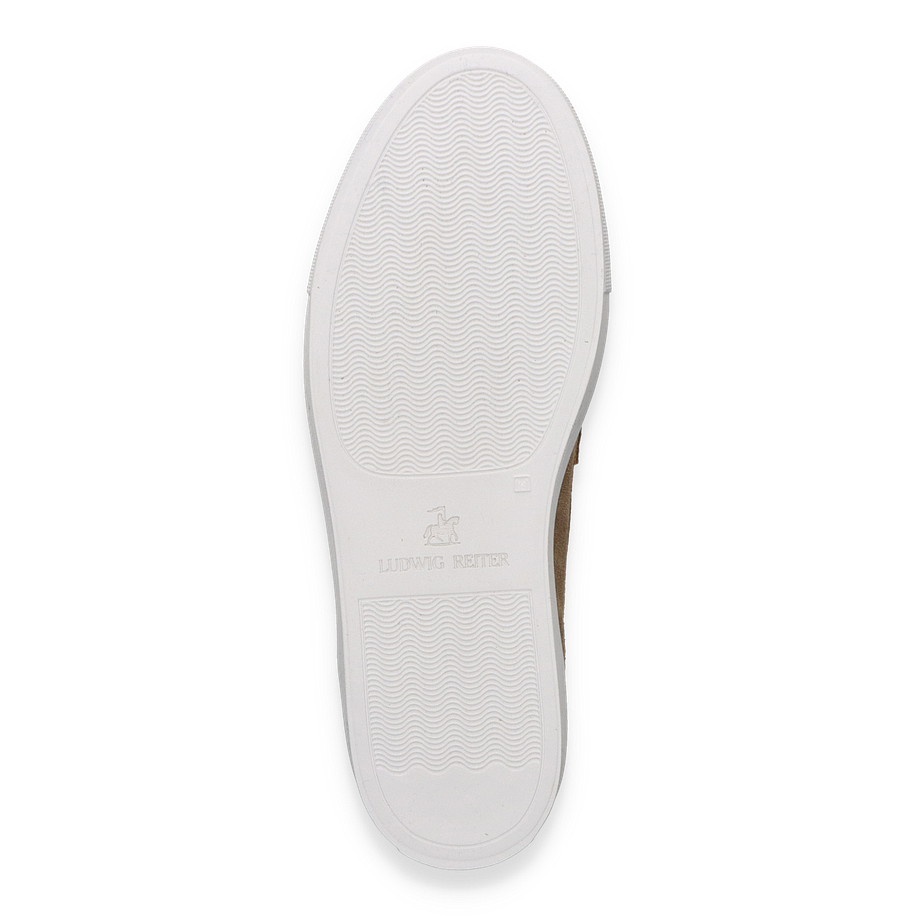 Preis inkl. MwSt.Entdecken Sie den eleganten Ludwig Reiter Slipper in einem stilvollen Hellbraun, der sich perfekt für Herren eignet. Dieser Schuh besticht durch sein raffiniertes Design und die hochwertige Verarbeitung. Das Obermaterial aus feinem Leder verleiht dem Slipper eine luxuriöse Optik, während die dezente Nahtführung und die klassische Silhouette zeitlose Eleganz ausstrahlen. Die weiße Gummisohle sorgt für einen modernen Kontrast und bietet gleichzeitig hervorragenden Halt.