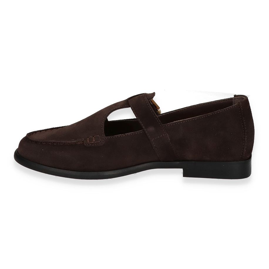 Preis inkl. MwSt.Entdecken Sie die eleganten Monkstraps für Damen von Marco O'Polo in einem tiefen Dunkelbraun. Diese Schuhe zeichnen sich durch ihr hochwertiges Lederobermaterial aus, das nicht nur stilvoll, sondern auch langlebig ist. Der klassische Monkstrap-Verschluss mit einer goldfarbenen Schnalle verleiht dem Schuh eine zeitlose Eleganz und sorgt für einen sicheren Sitz. Die dezente Absatzhöhe von 2 cm bietet Komfort und einen leichten Auftritt, während die feinen Nähte und das edle Design den Schuh zu einem vielseitigen Begleiter für verschiedene Anlässe machen.