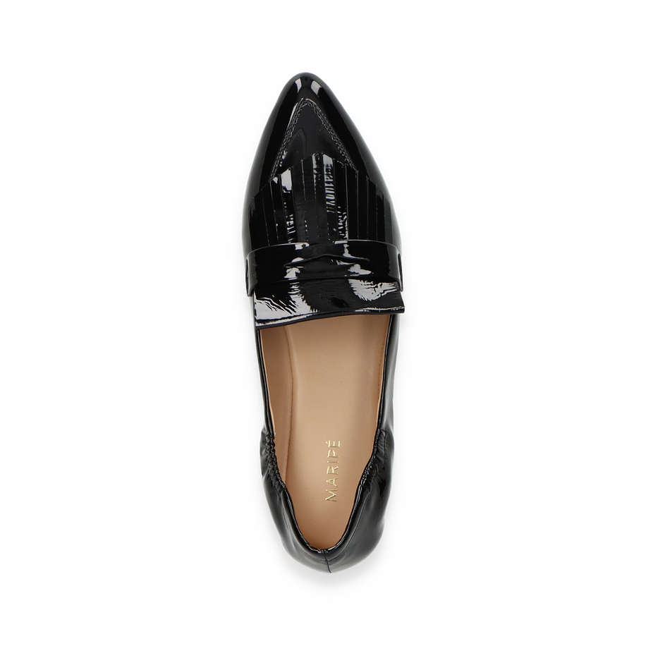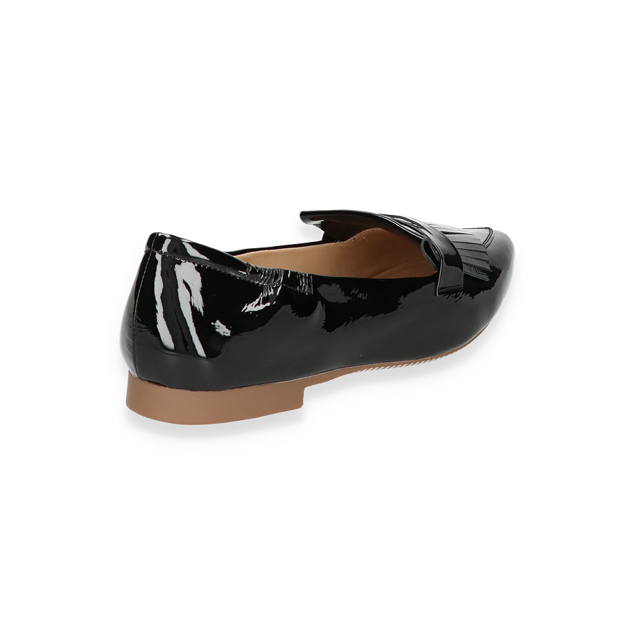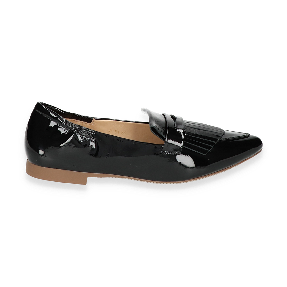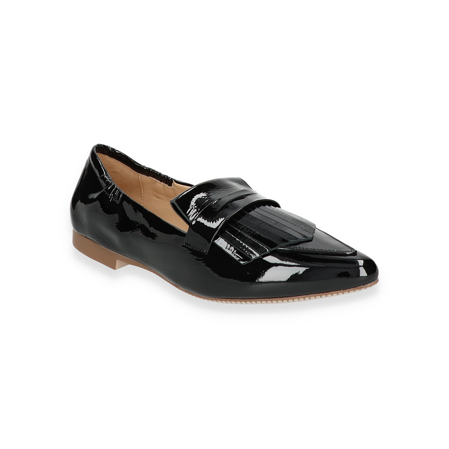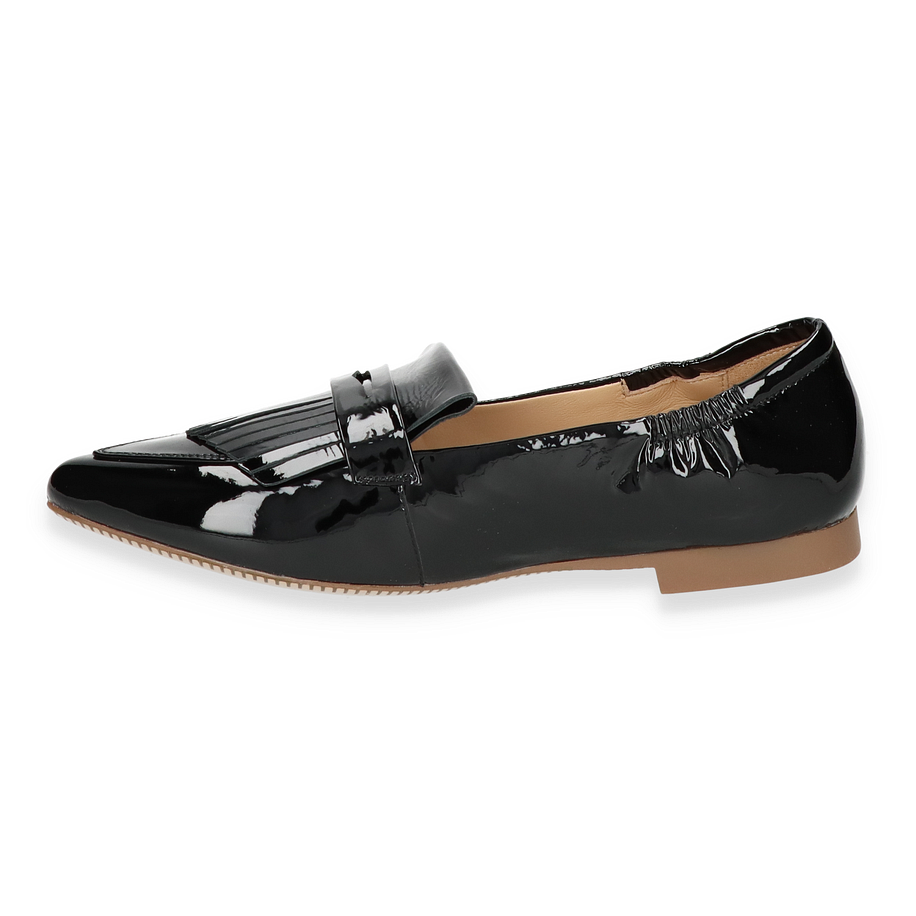 Entdecken Sie den eleganten Maripé Slipper für Damen in klassischem Schwarz. Dieses Modell besticht durch sein glänzendes Leder-Obermaterial, das einen Hauch von Raffinesse und Stil verleiht. Der dezente Absatz von 1,5 cm sorgt für einen angenehmen Tragekomfort, während das Design mit einer modernen Note überzeugt. Die sorgfältige Verarbeitung und die stilvollen Details machen diesen Slipper zu einem perfekten Begleiter für jeden Anlass.