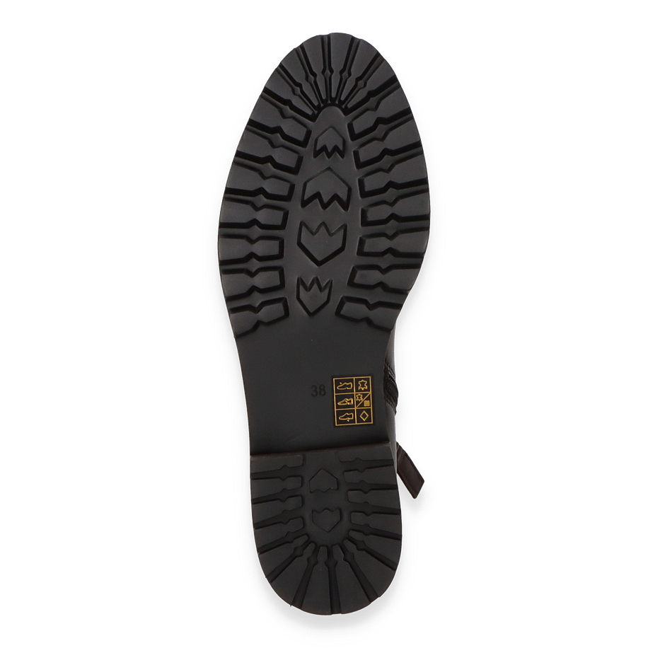 Preis inkl. MwSt.Die Maripé Klassische Stiefeletten für Damen präsentieren sich in einem eleganten Dunkelbraun, das zeitlose Raffinesse ausstrahlt. Mit einem dezenten Absatz von 3 cm bieten diese Stiefeletten eine perfekte Balance zwischen Stil und Komfort. Das hochwertige Leder-Obermaterial verleiht den Schuhen eine luxuriöse Optik, während die elastischen Seiteneinsätze für eine bequeme Passform sorgen. Diese Stiefeletten sind ideal für den täglichen Gebrauch und lassen sich mühelos mit verschiedenen Outfits kombinieren.