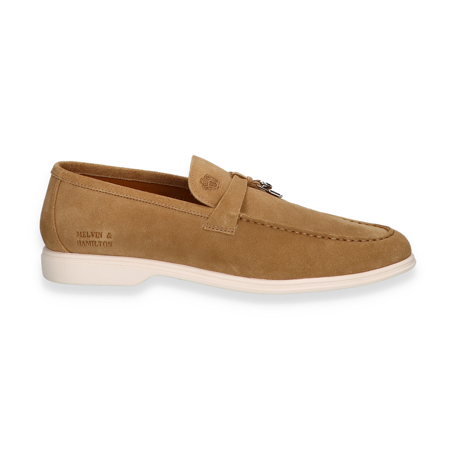 Preis inkl. MwSt.Entdecken Sie den eleganten Slipper von Melvin & Hamilton in einem ansprechenden hellbraunen Farbton, der sich nahtlos in jede Garderobe für Herren einfügt. Das Design besticht durch seine schlichte Eleganz und die feinen Details, wie das dezente Emblem auf der Oberseite. Die hochwertige Verarbeitung des Leders verleiht dem Schuh eine luxuriöse Ausstrahlung, während die klare Linienführung und die subtile Nahtführung für einen zeitlosen Look sorgen.