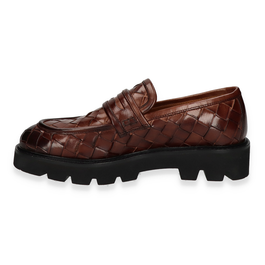 Preis inkl. MwSt.Der Melvin & Hamilton Slipper JADE für Damen präsentiert sich in einem eleganten Dunkelbraun, das durch das geflochtene Lederdesign einen Hauch von Raffinesse erhält. Der Schuh vereint klassische Ästhetik mit modernem Stil, was ihn zu einem vielseitigen Begleiter für verschiedene Anlässe macht. Die robuste Gummisohle sorgt für einen markanten Kontrast und bietet gleichzeitig hervorragenden Halt und Stabilität.
