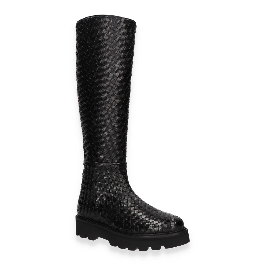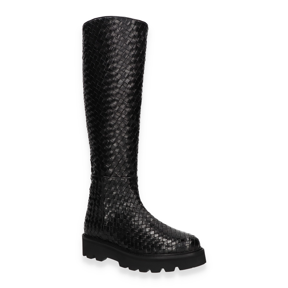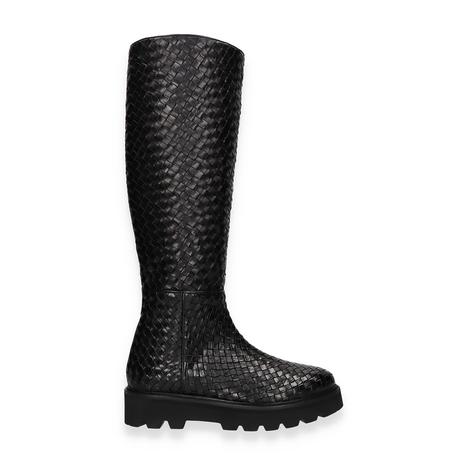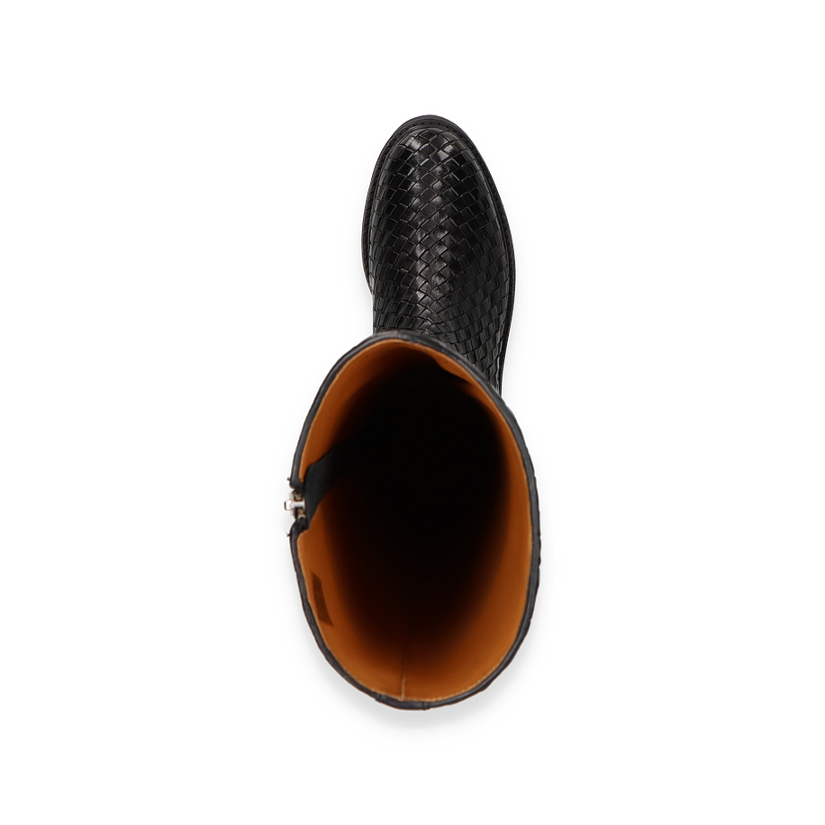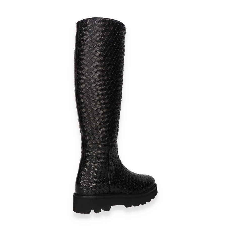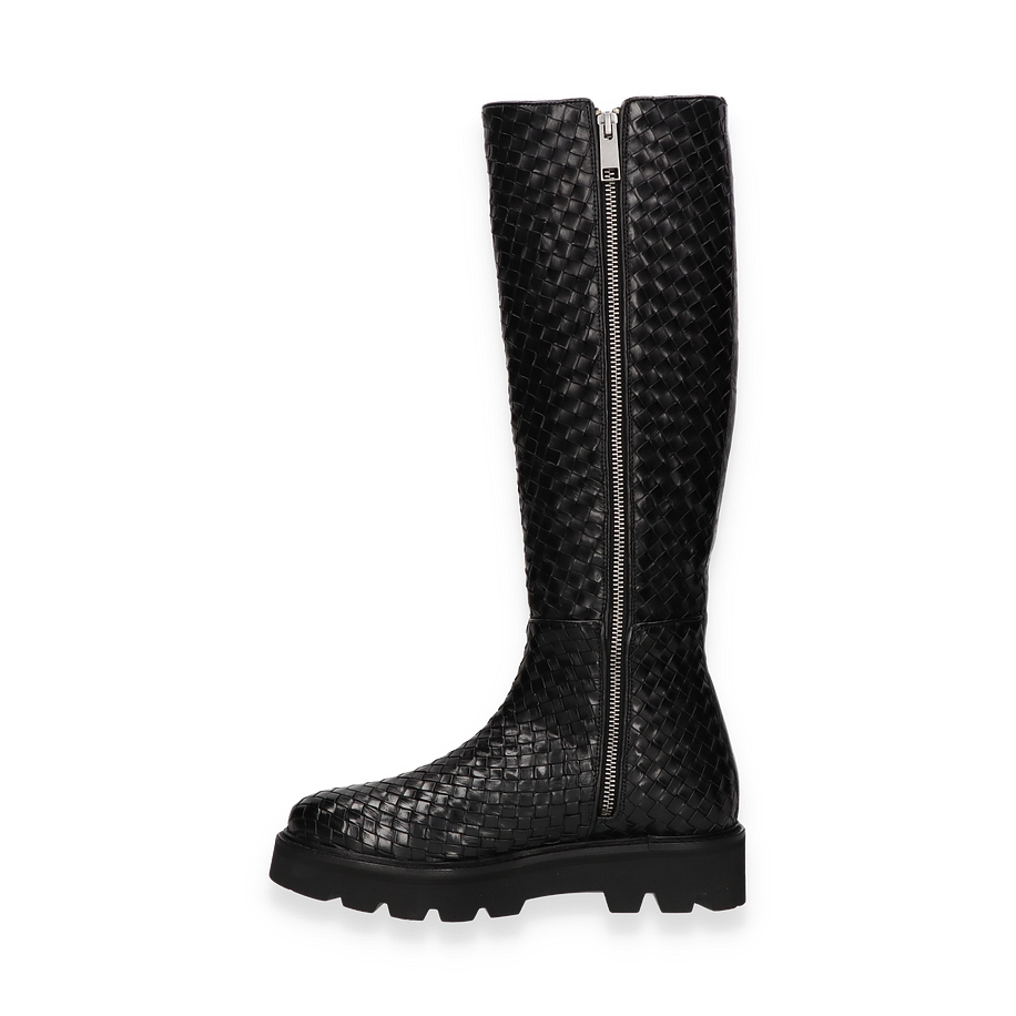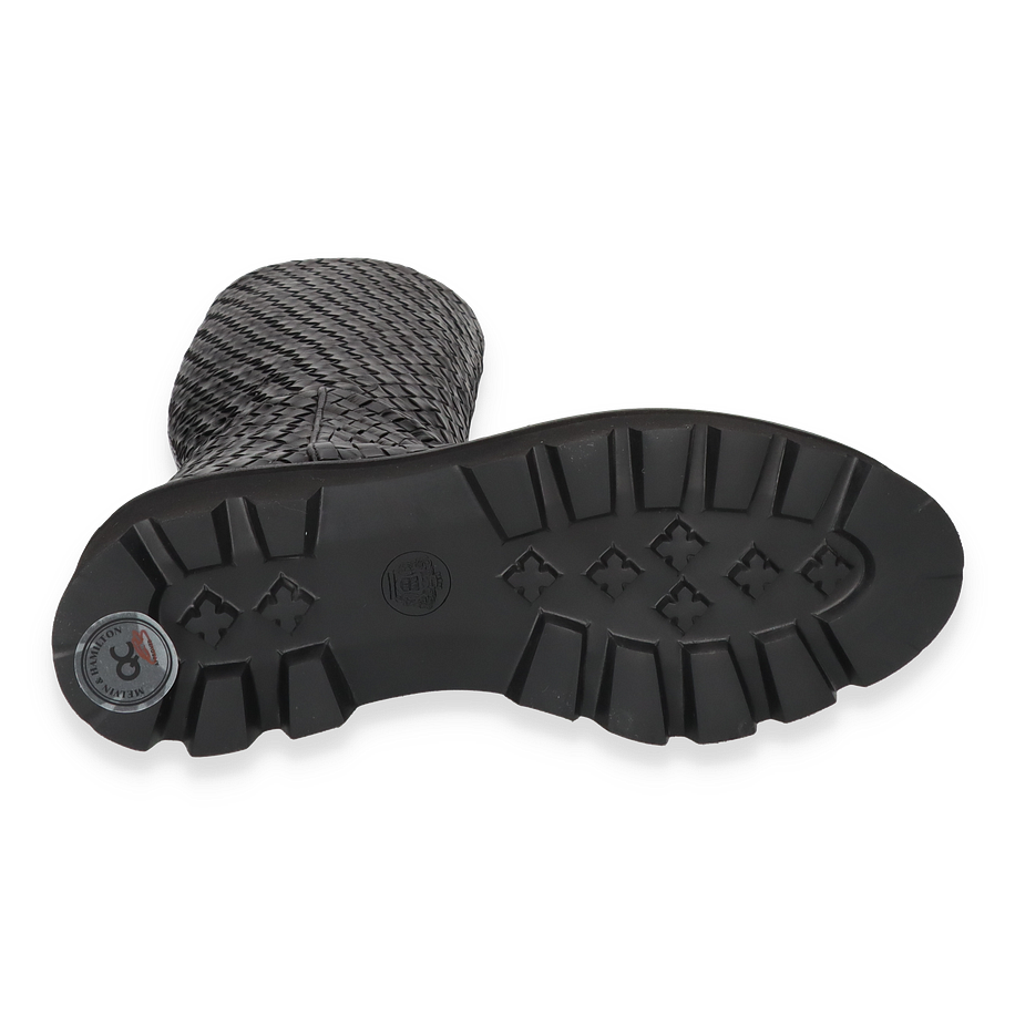 Der Melvin & Hamilton Stiefel LEONIE für Damen präsentiert sich in einem eleganten Schwarz, das durch ein kunstvolles Flechtmuster besticht. Diese Stiefel vereinen Stil und Komfort, wobei das hochwertige Leder als Obermaterial für einen luxuriösen Look sorgt. Die robuste Gummisohle bietet nicht nur hervorragenden Halt, sondern ergänzt auch das stilvolle Design. Mit einer Schafthöhe von 41 cm und einer Schaftweite von 30 cm umschmeicheln sie das Bein und bieten eine perfekte Passform.