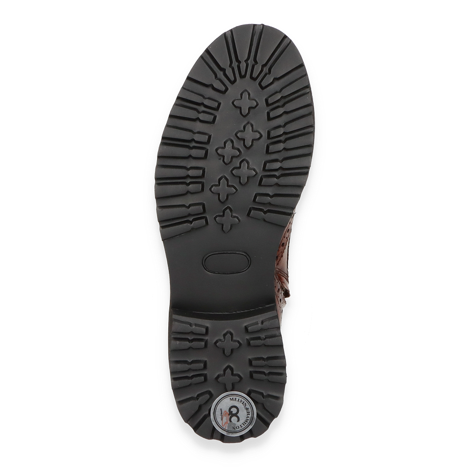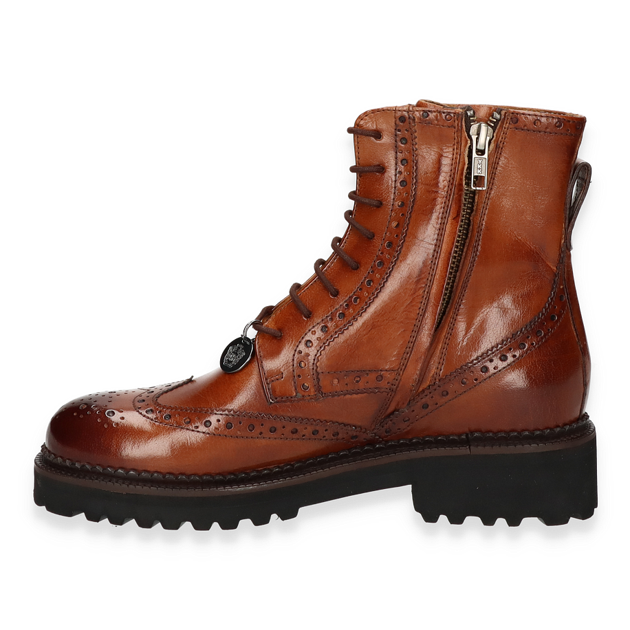 Preis inkl. MwSt.Die Melvin & Hamilton Schnürboots "MARIA" für Damen präsentieren sich in einem eleganten Braunton, der zeitlose Klasse ausstrahlt. Das Obermaterial aus hochwertigem Leder ist mit feinen Broguing-Details verziert, die dem Schuh eine raffinierte Note verleihen. Der robuste Schnürverschluss und der seitliche Reißverschluss sorgen für eine perfekte Passform und einfaches An- und Ausziehen. Die markante Profilsohle verleiht dem Schuh nicht nur einen modernen Look, sondern bietet auch hervorragenden Halt.