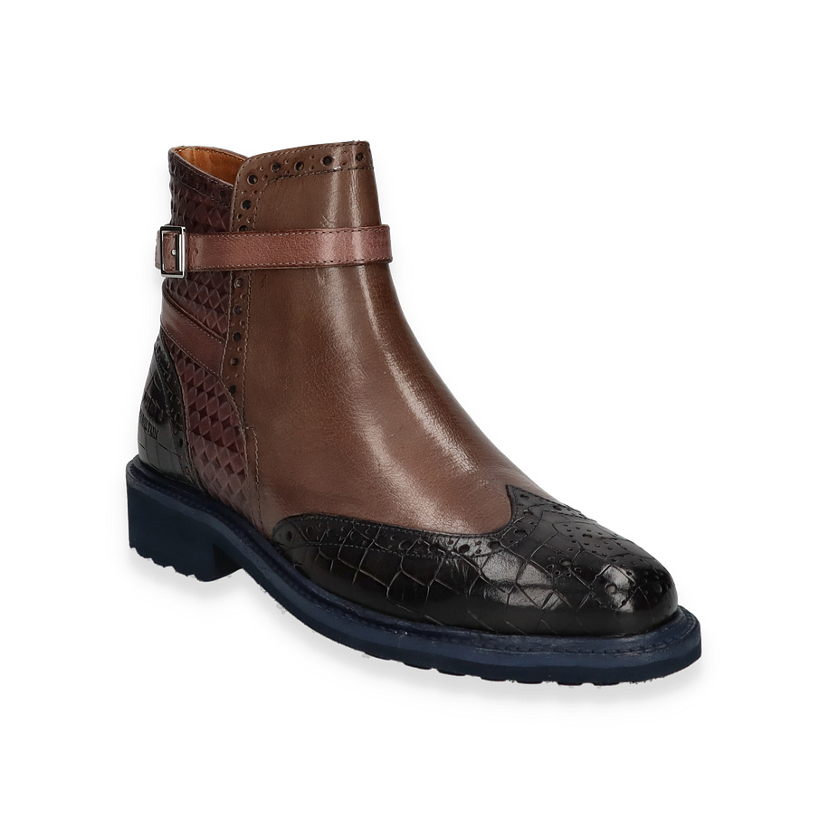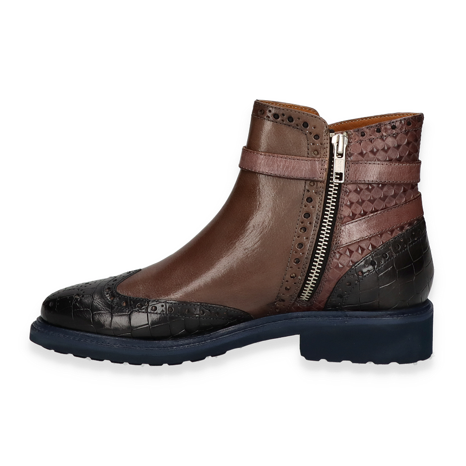 Preis inkl. MwSt.Die Melvin & Hamilton SELINA Stiefelette für Damen präsentiert sich in einem eleganten Taupe/Bunt-Design, das durch raffinierte Details besticht. Der Mix aus glattem und strukturiertem Leder verleiht dem Schuh eine besondere Note, während der dezente Riemen mit Schnalle für einen stilvollen Akzent sorgt. Die Kombination aus verschiedenen Brauntönen und der kontrastierenden schwarzen Spitze machen diese Stiefelette zu einem echten Hingucker. Der robuste Gummisohle bietet nicht nur Stabilität, sondern auch einen modernen Look.