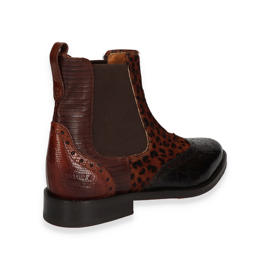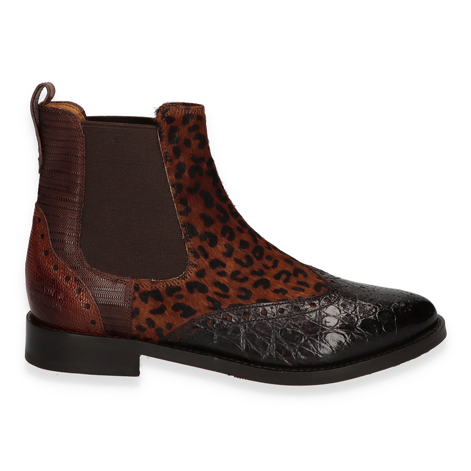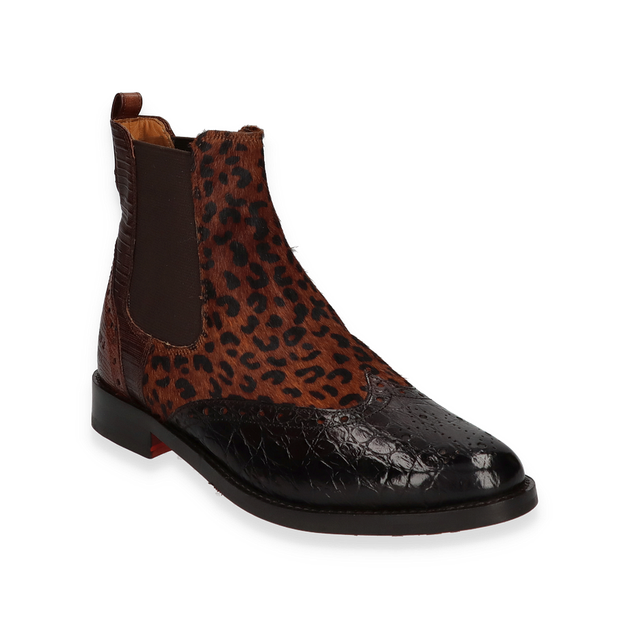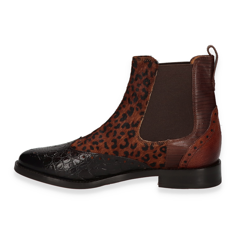 Preis inkl. MwSt.Die Melvin & Hamilton Klassische Stiefeletten für Damen präsentieren sich in einem einzigartigen Braun/Bunt-Design, das durch einen faszinierenden Mix aus verschiedenen Texturen besticht. Der Schuh kombiniert elegantes Leder mit einem auffälligen Leopardenmuster, das dem klassischen Stil eine moderne Note verleiht. Die seitlichen elastischen Einsätze sorgen für einen bequemen Einstieg und unterstreichen das stilvolle Design. Diese Stiefelette ist ein wahrer Hingucker und verleiht jedem Outfit einen Hauch von Raffinesse.