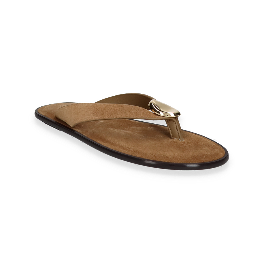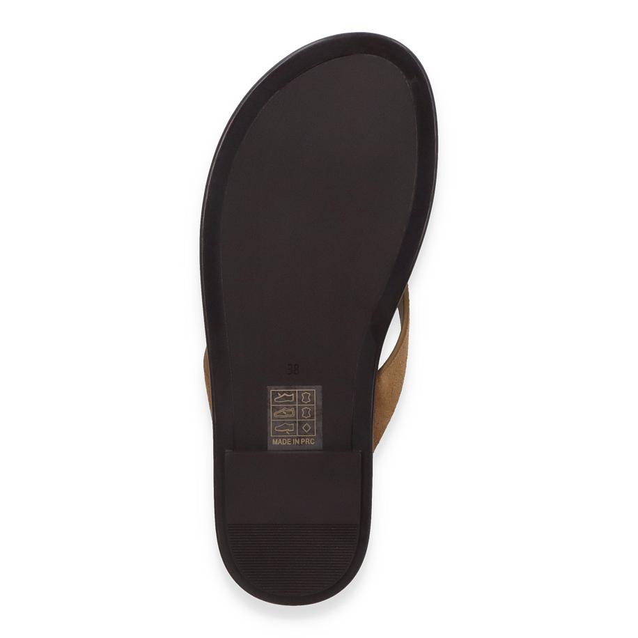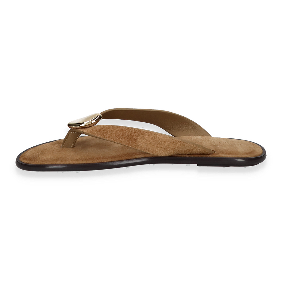 Preis inkl. MwSt.Entdecken Sie die stilvollen Zehentrenner für Damen von MORMORA in einem eleganten Beige-Ton. Diese Sandalen vereinen minimalistisches Design mit einem Hauch von Luxus, dank des goldfarbenen Akzents auf dem Riemen. Die flache Sohle und der dezente Absatz von 0,5 cm bieten optimalen Komfort und machen sie ideal für den Alltag oder entspannte Sommerabende.