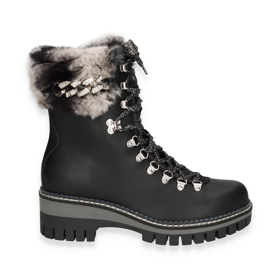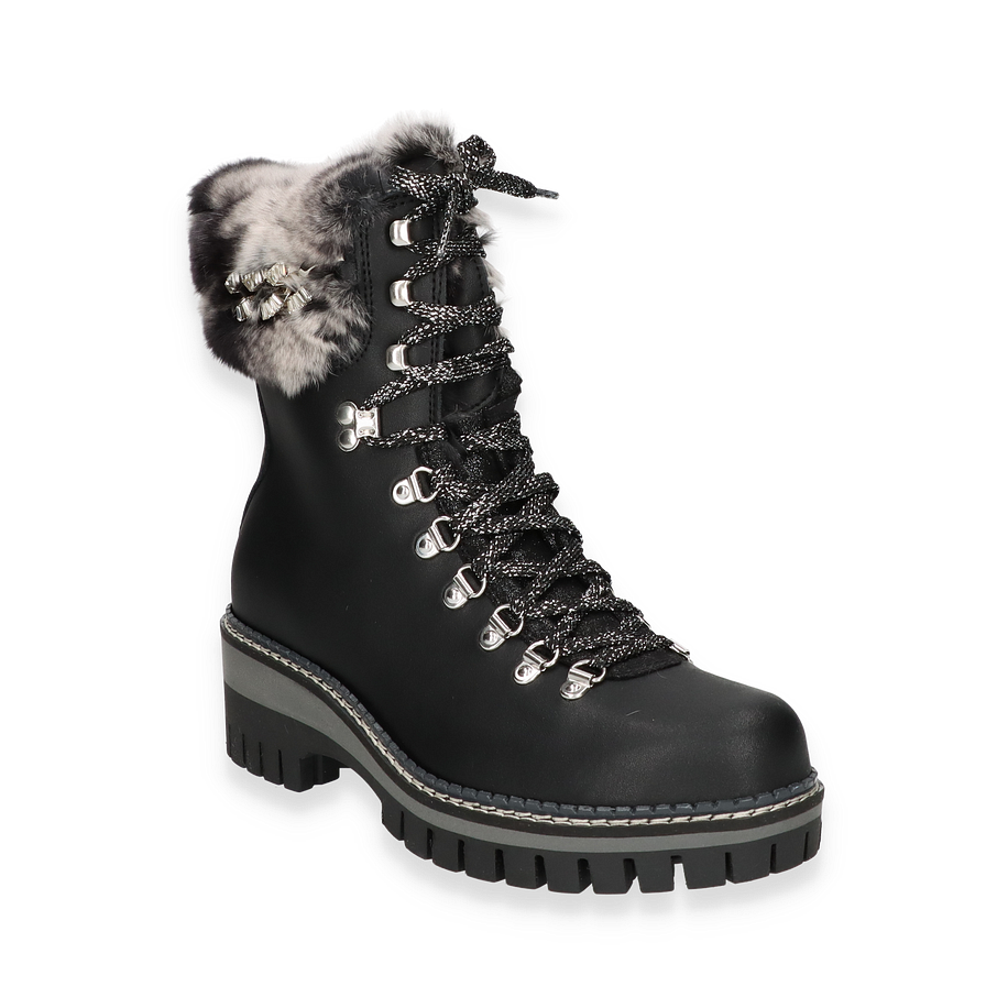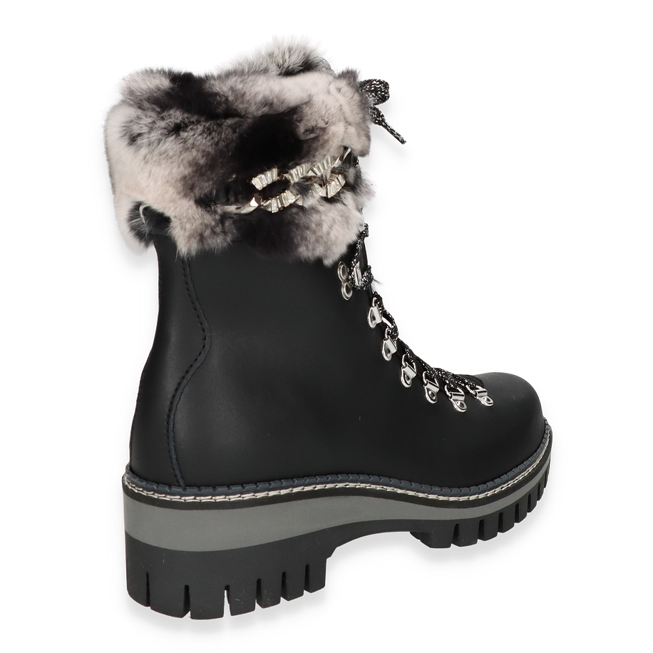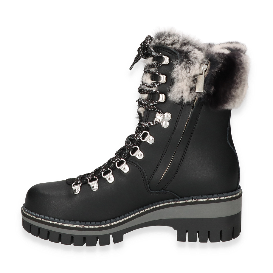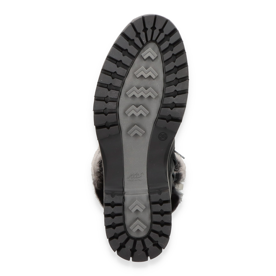 Preis inkl. MwSt.Die NIS New Italia Shoes Boots für Damen präsentieren sich in elegantem Schwarz und vereinen Stil mit Funktionalität. Der robuste Look wird durch die Kombination aus Leder, Textil und sonstigem Material unterstrichen. Die dekorativen Schnürsenkel und das luxuriöse Warmfutter aus Kunstfell verleihen den Boots einen Hauch von Raffinesse und machen sie zu einem idealen Begleiter für kalte Tage. Der 5 cm hohe Absatz sorgt für eine schmeichelhafte Silhouette, während die markante Profilsohle aus Gummi optimalen Halt bietet.