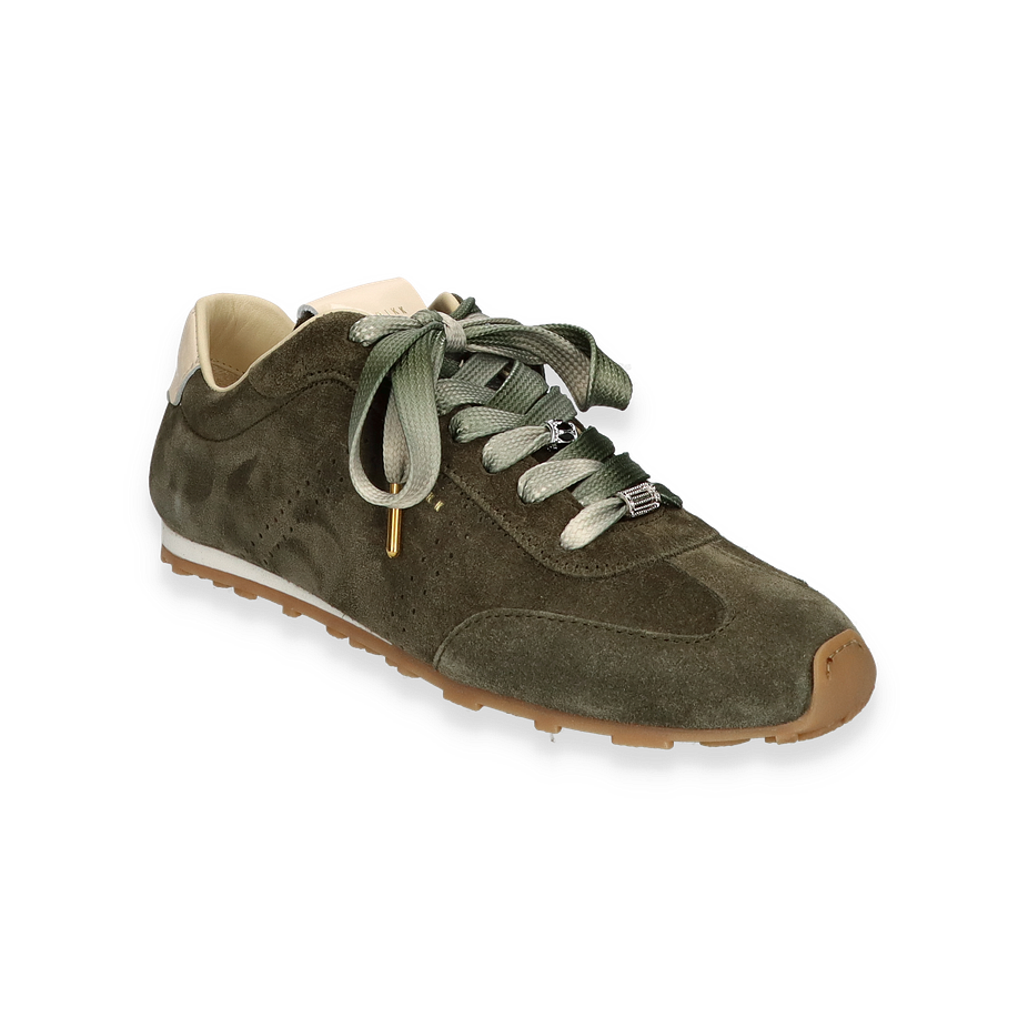 Preis inkl. MwSt.Der BILLY LOU Sneaker von Nubikk in Oliv ist ein stilvoller Begleiter für Damen, der durch sein elegantes Design und hochwertige Materialien besticht. Das Obermaterial aus Leder verleiht dem Schuh eine luxuriöse Optik, während die sorgfältig gestalteten Details, wie die zweifarbigen Schnürsenkel und die dezente Perforation, für einen modernen Touch sorgen. Die Kombination aus der olivfarbenen Oberfläche und der hellen Gummisohle schafft einen harmonischen Kontrast, der den Sneaker zu einem vielseitigen Begleiter für verschiedene Anlässe macht.