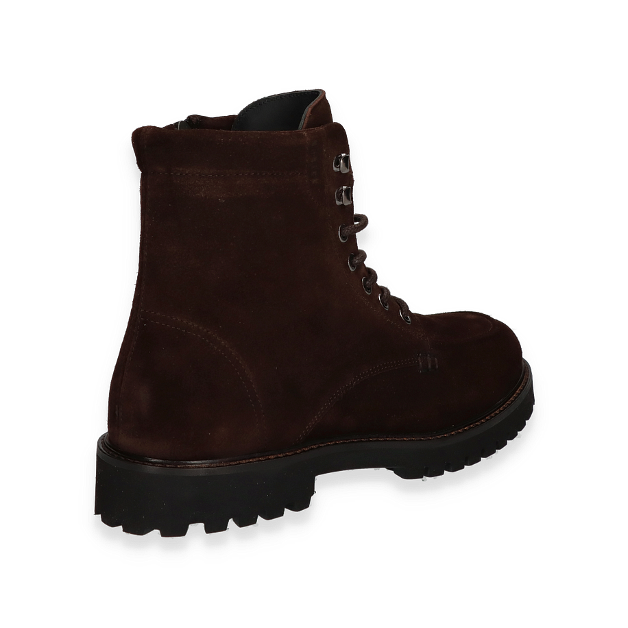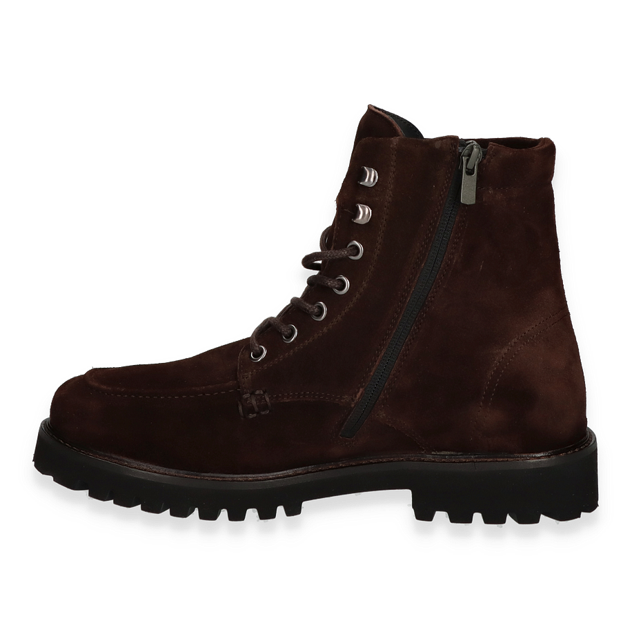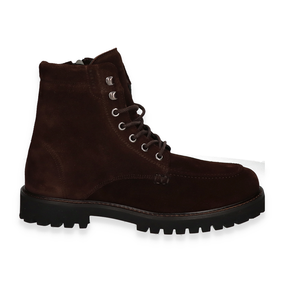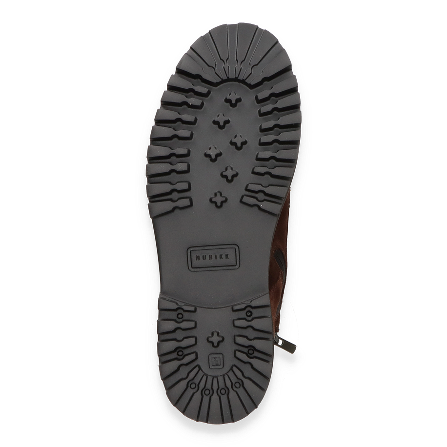 Der NUBIKK ETHAN HARVEY Schnürboot für Herren präsentiert sich in einem eleganten Dunkelbraun und besticht durch sein robustes Design. Die hochwertige Lederoberfläche verleiht dem Schuh eine edle Optik, während die sorgfältig gearbeiteten Details wie die markanten Schnürsenkel und die stabilen Metallösen für einen modernen Look sorgen. Mit einer Schafthöhe von 16 cm und einer Schaftweite von 24 cm bietet dieser Boot optimalen Halt und Komfort. Die profilierte Gummisohle garantiert zudem einen sicheren Tritt auf verschiedenen Untergründen.