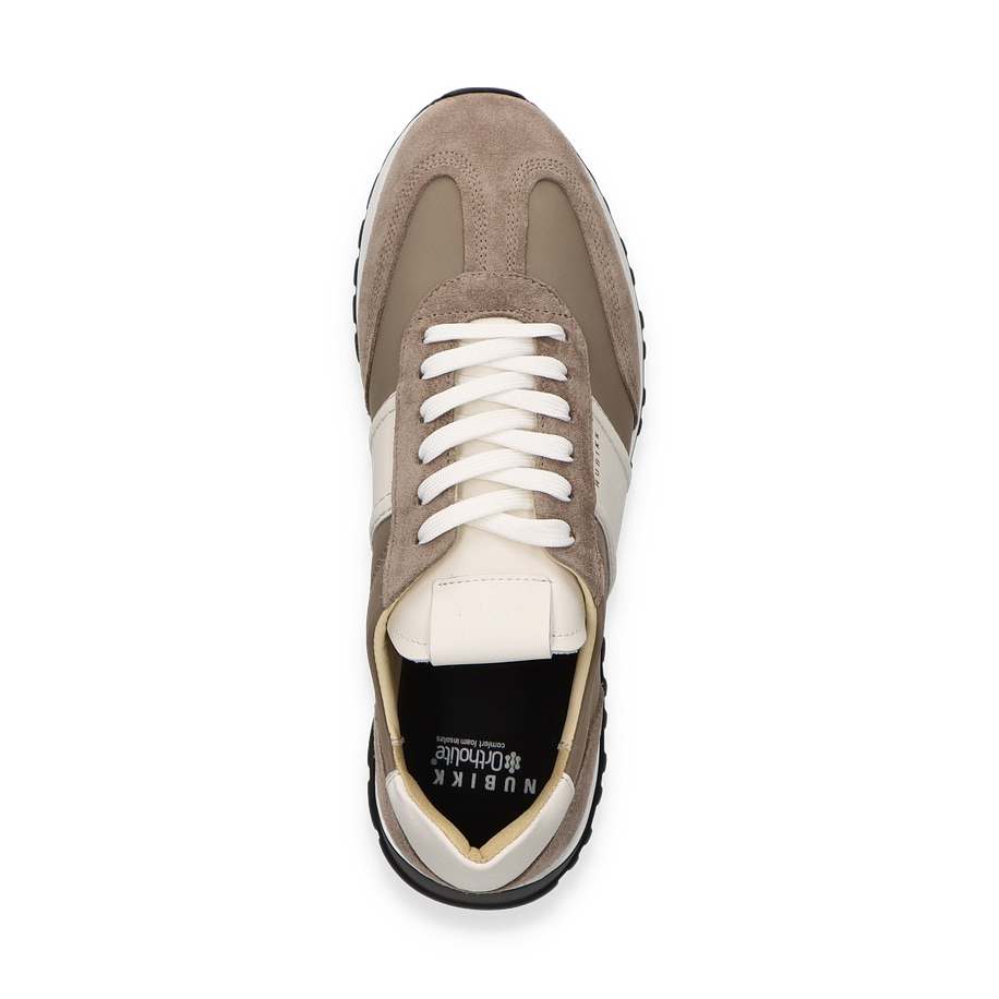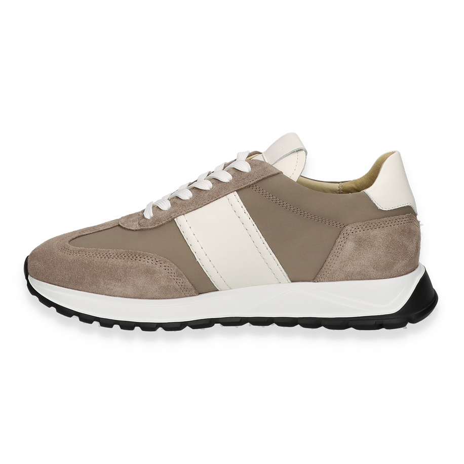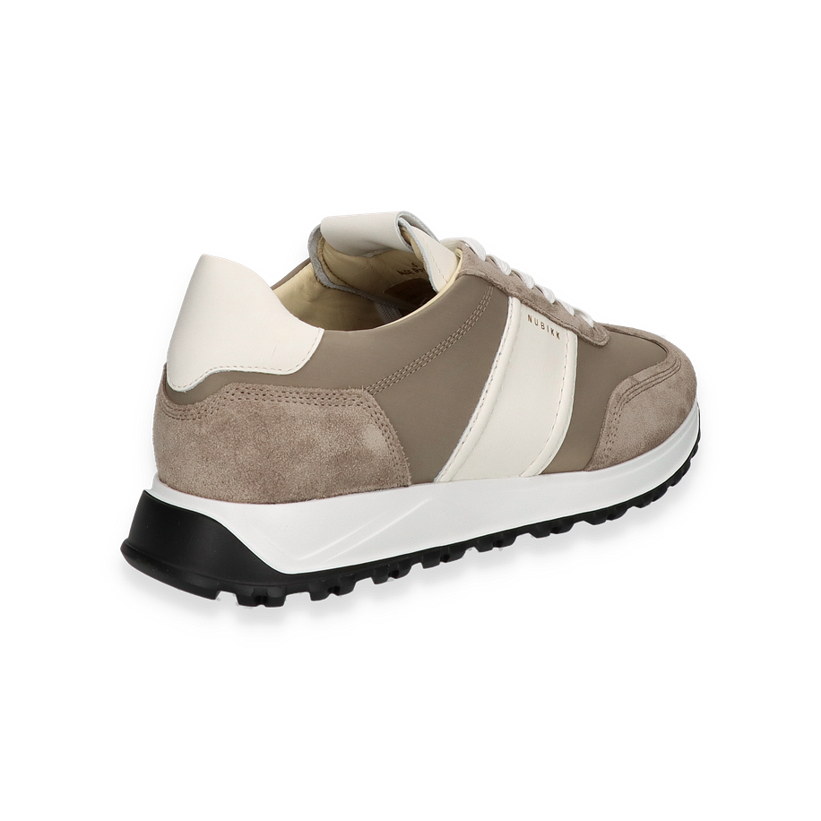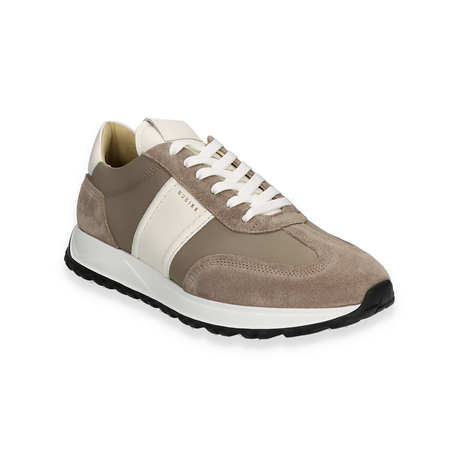 Der GLENN HENDRIX Sneaker von NUBIKK präsentiert sich in einem eleganten Mittelbraun, das durch weiße Akzente stilvoll ergänzt wird. Das Obermaterial aus hochwertigem Leder verleiht dem Schuh eine edle Optik, während die sorgfältig gestalteten Details für einen modernen Look sorgen. Die Kombination aus glatten und strukturierten Lederflächen schafft eine ansprechende Textur, die den Sneaker zu einem vielseitigen Begleiter für Herren macht. Die robuste Gummisohle bietet nicht nur hervorragenden Halt, sondern auch einen sportlichen Touch, der den Gesamteindruck abrundet.