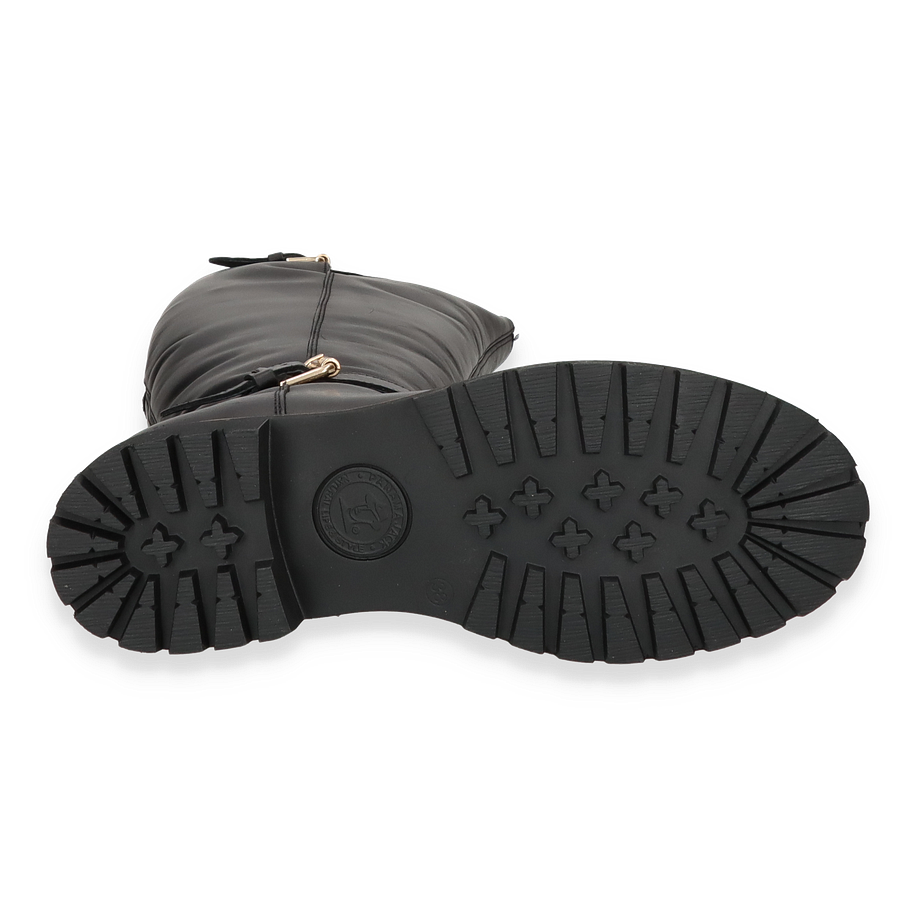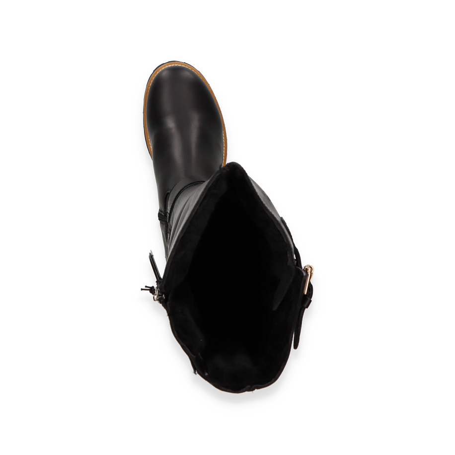 Der Panama Jack AMBERES Winterstiefel für Damen in elegantem Schwarz ist die perfekte Wahl für die kalte Jahreszeit. Der Stiefel besticht durch sein hochwertiges Leder-Obermaterial und die stilvollen Schnallen-Details, die für einen modernen Look sorgen. Mit einer Schafthöhe von 41 cm und einer Schaftweite von 17 cm bietet der Stiefel nicht nur optimalen Schutz vor Kälte, sondern auch einen bequemen Sitz. Die robuste Gummisohle sorgt für sicheren Halt auf rutschigen Oberflächen, während der 3 cm hohe Absatz dem Stiefel eine feminine Note verleiht. Der Innenraum des AMBERES Winterstiefels ist vollständig mit weichem Lammfell und Leder ausgekleidet, was für hervorragende Wärmeisolierung und Tragekomfort sorgt. Die Leder-Innensohle unterstützt die natürliche Fußform und bietet zusätzlichen Komfort bei jedem Schritt. Dieser Winterstiefel vereint stilvolles Design mit praktischen Eigenschaften und ist somit ein unverzichtbarer Begleiter für kalte Wintertage.